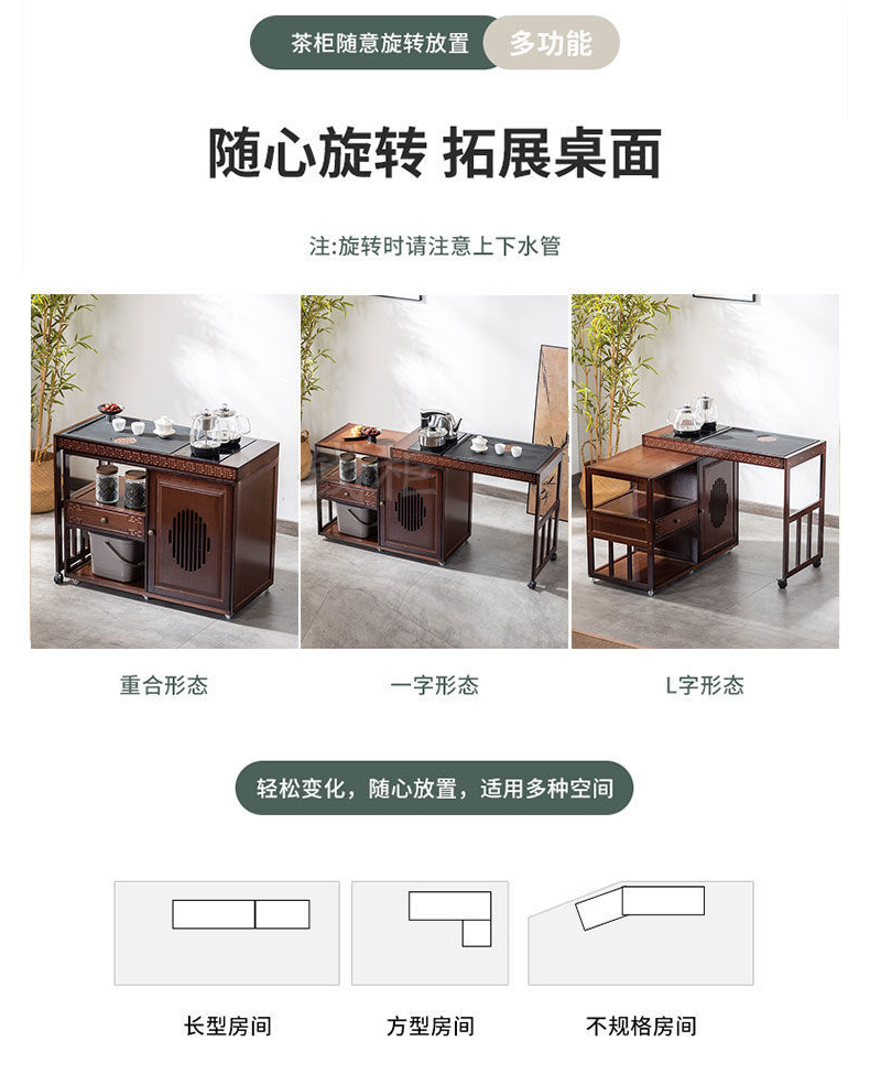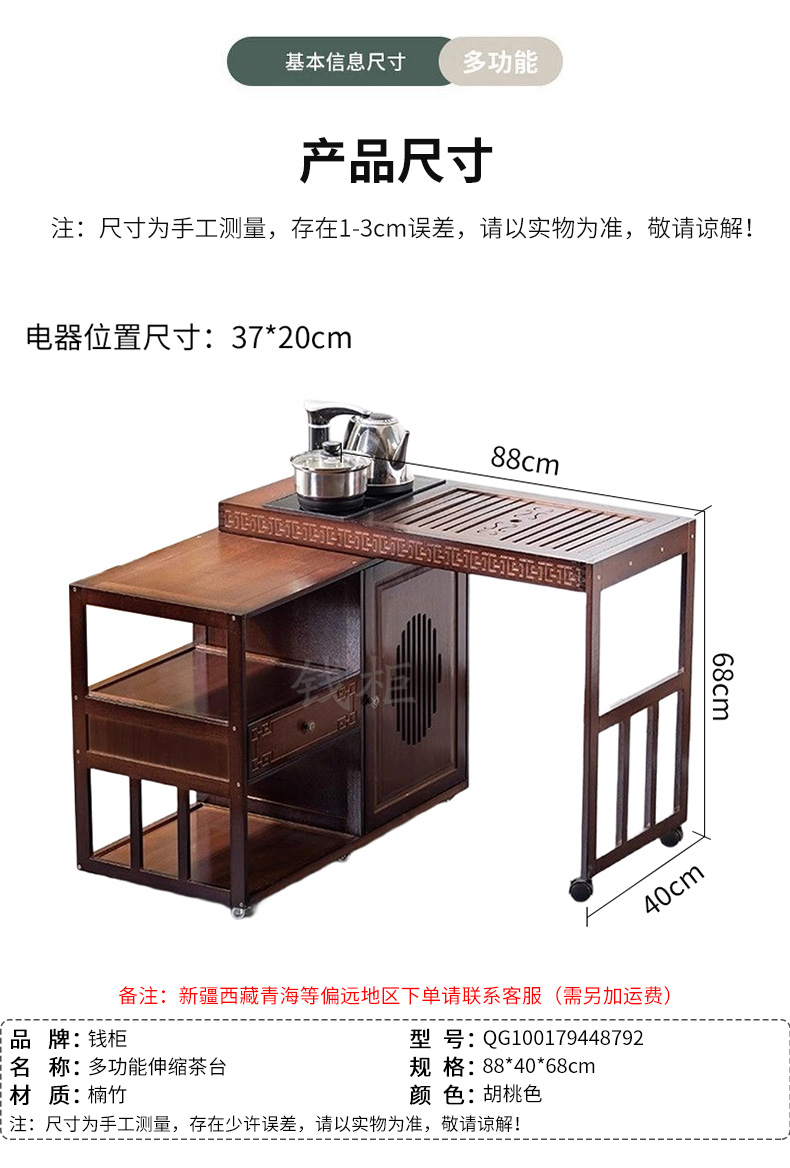 商品标题:钱柜QG100179448792茶几家用旋转多功能伸缩茶台烧水泡茶一体功夫茶桌楠竹茶台带电器(套)