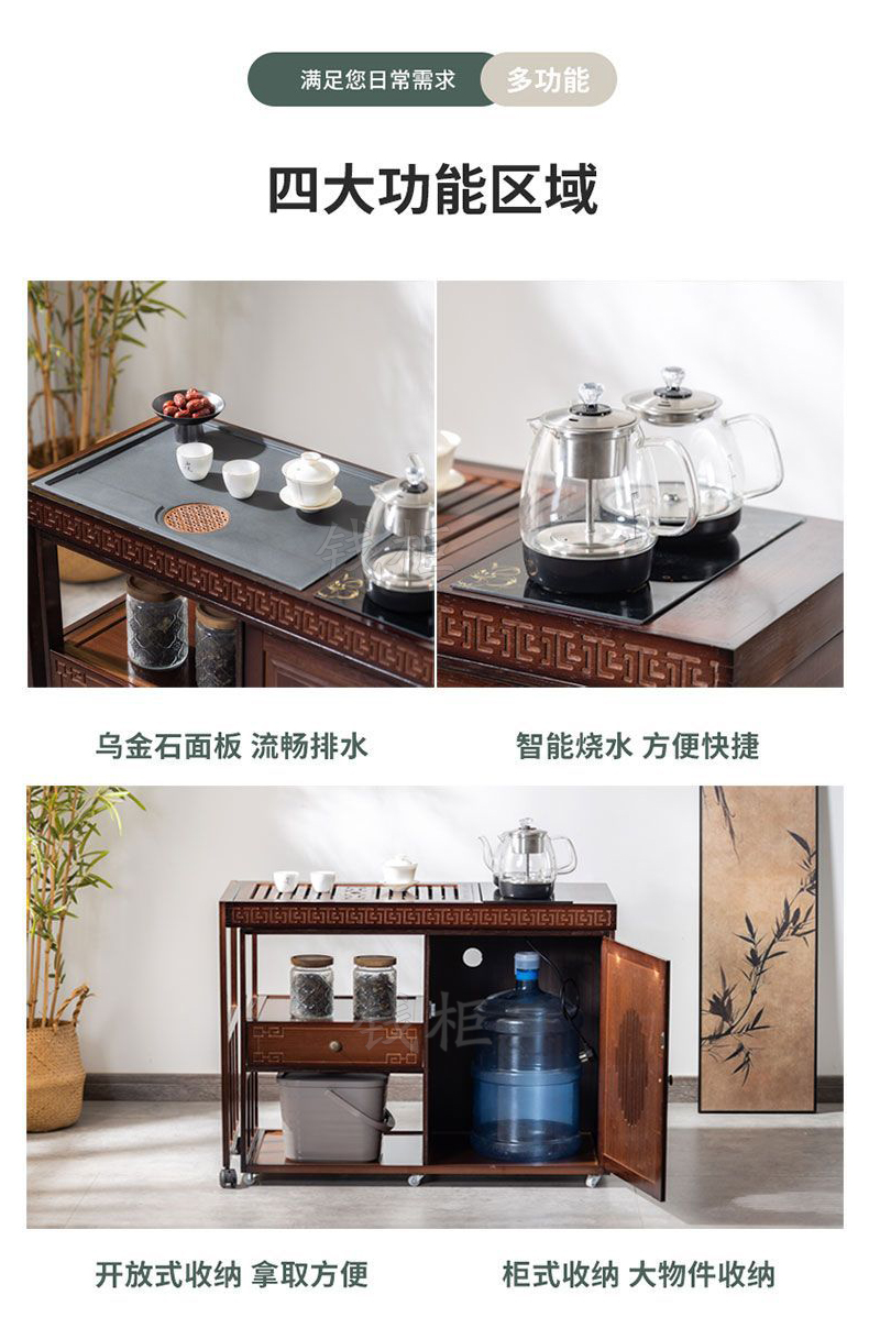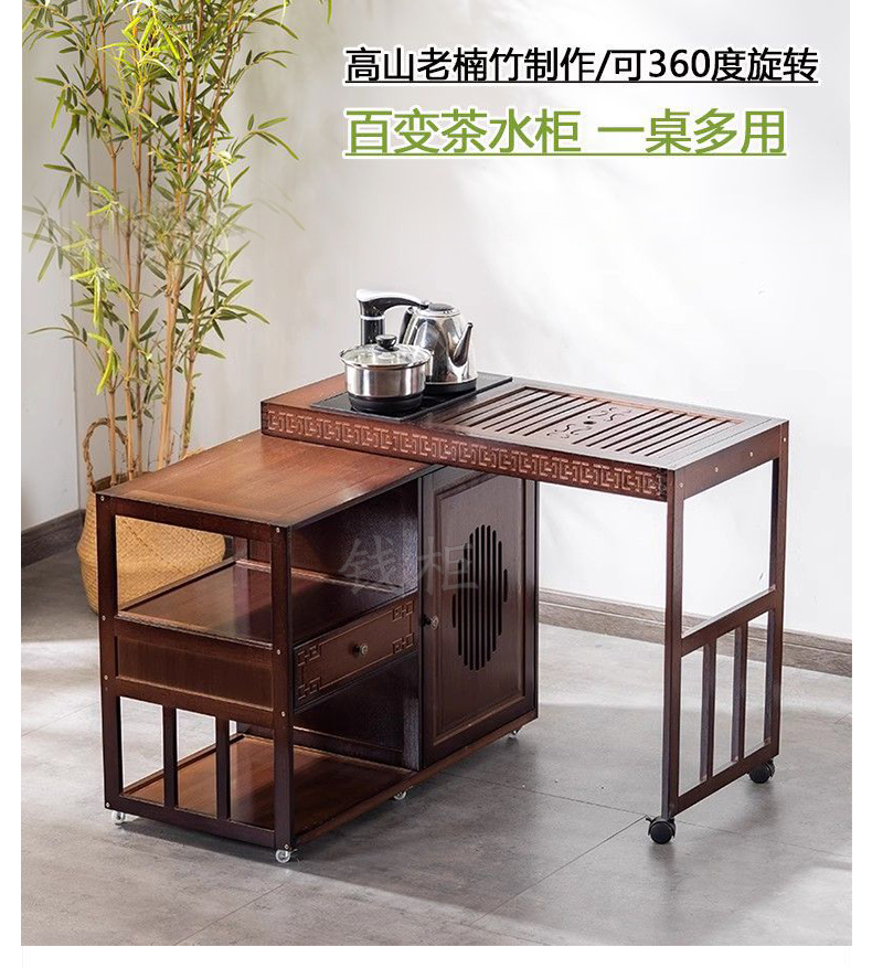 钱柜QG100179448792茶几家用旋转多功能伸缩茶台烧水泡茶一体功夫茶桌楠竹茶台带电器(套)