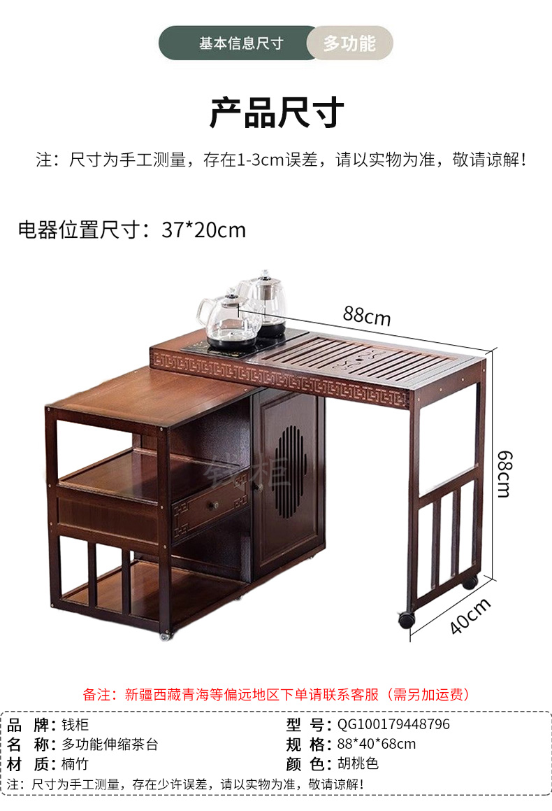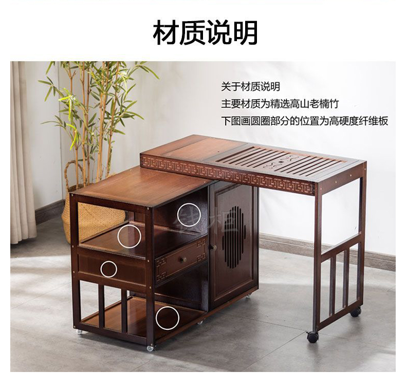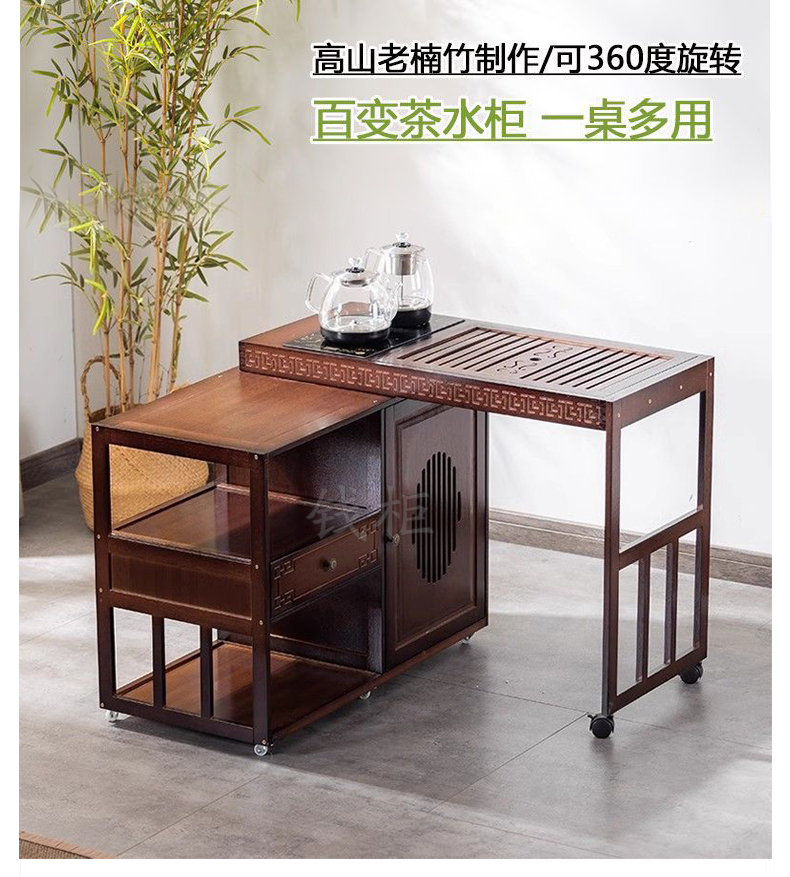 商品标题:钱柜QG100179448796茶几家用旋转多功能伸缩茶台烧水泡茶一体功夫茶桌楠竹茶台带玻璃煮茶器具(套)