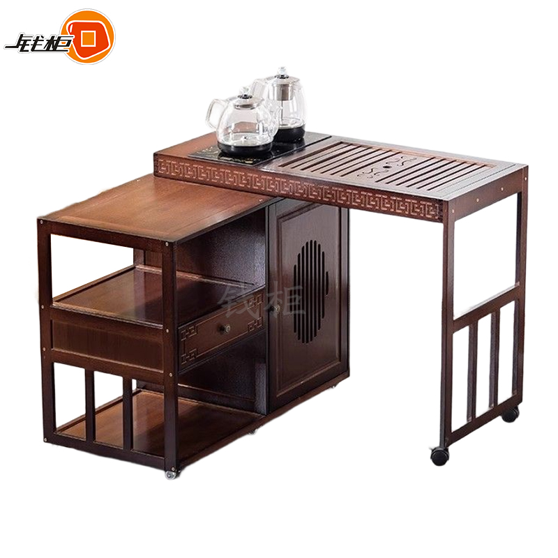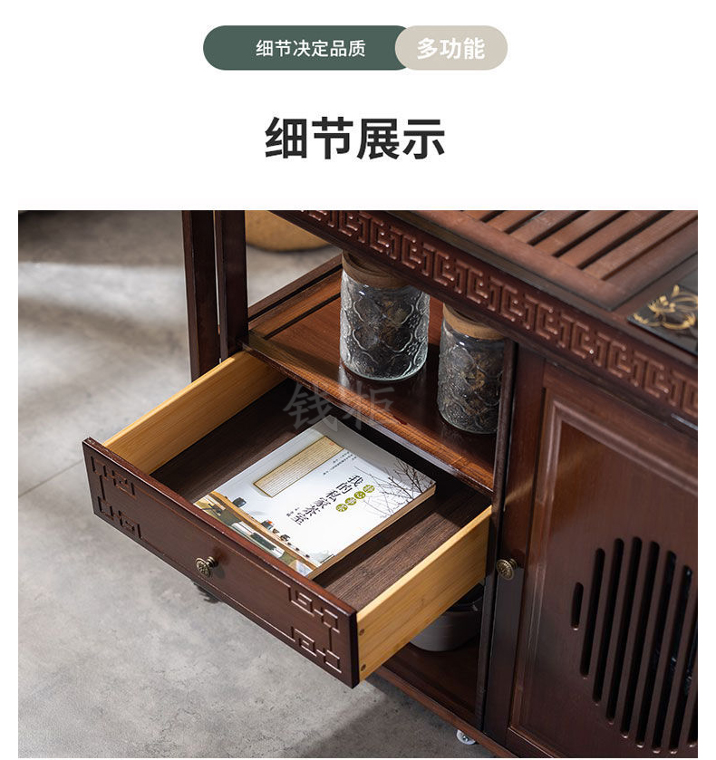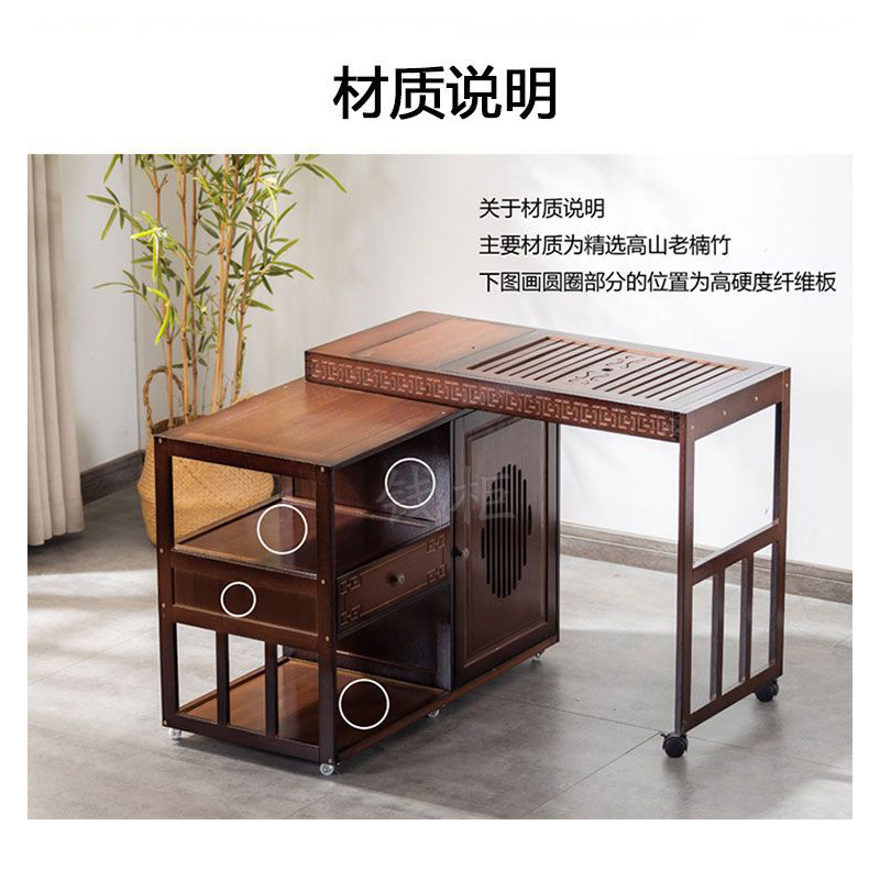 钱柜QG100179448796茶几家用旋转多功能伸缩茶台烧水泡茶一体功夫茶桌楠竹茶台带玻璃煮茶器具(套)