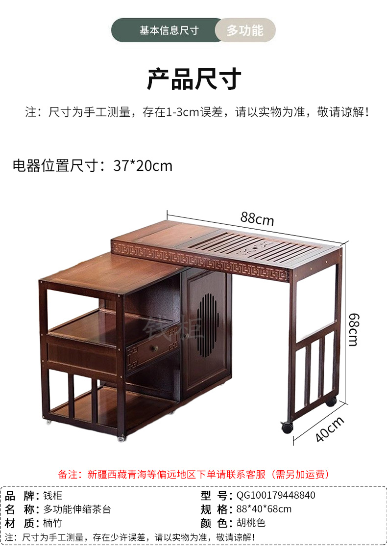 商品标题:钱柜QG100179448840茶几家用旋转多功能伸缩茶台烧水泡茶一体功夫茶桌楠竹茶台(张)