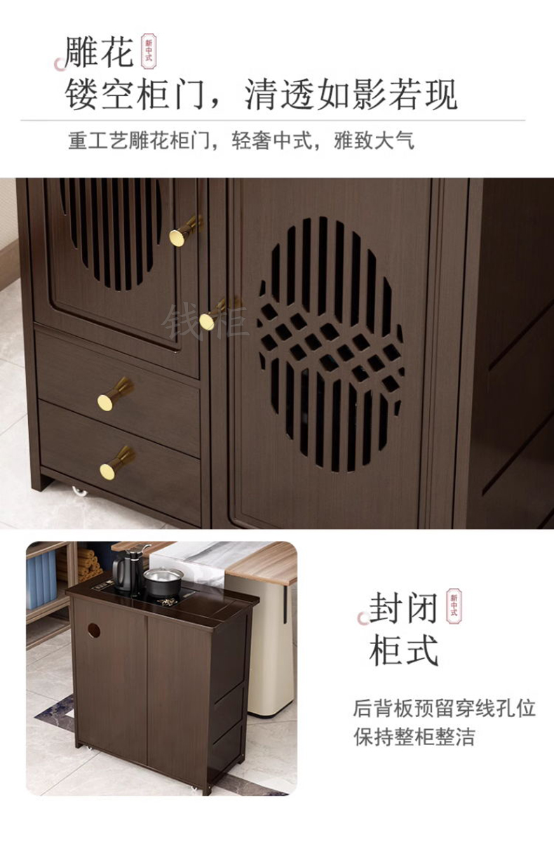 钱柜QG100141806847移动茶水柜茶台茶桌置物架水桶烧水壶一体茶吧柜子楠竹单抽茶柜+防烫自动电器(套)