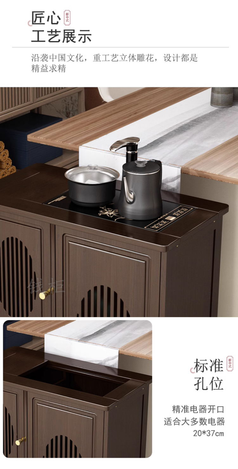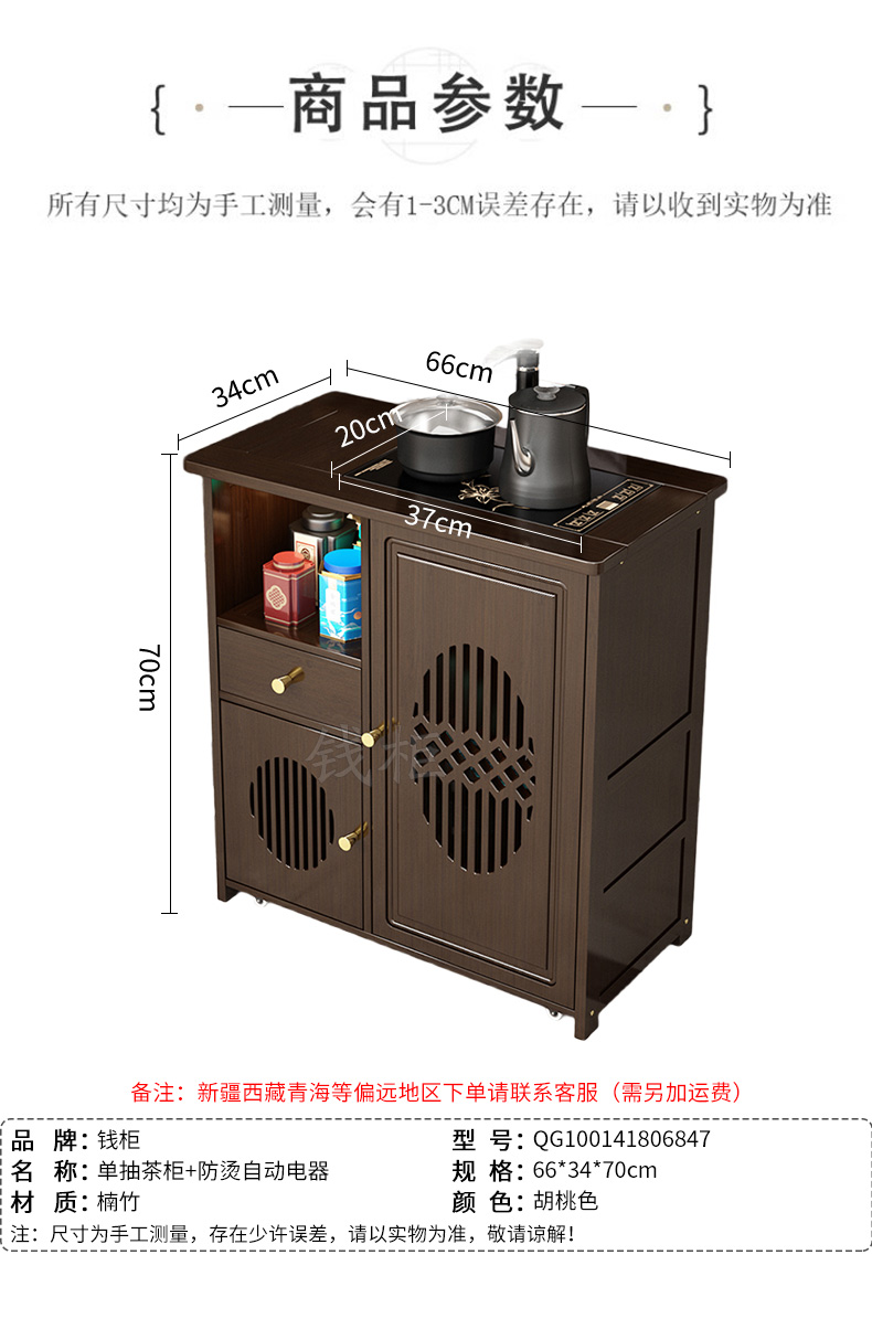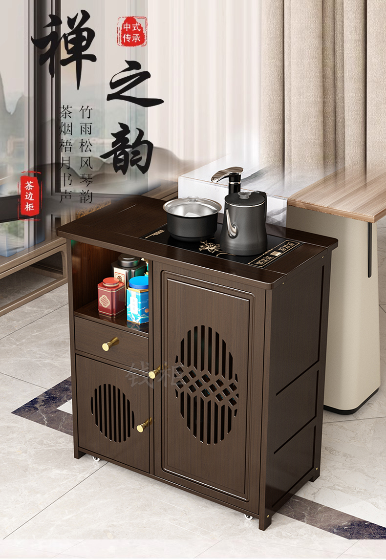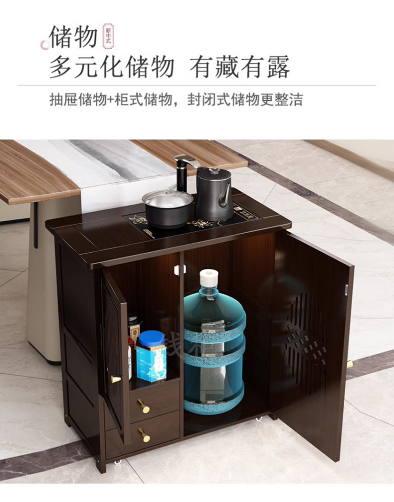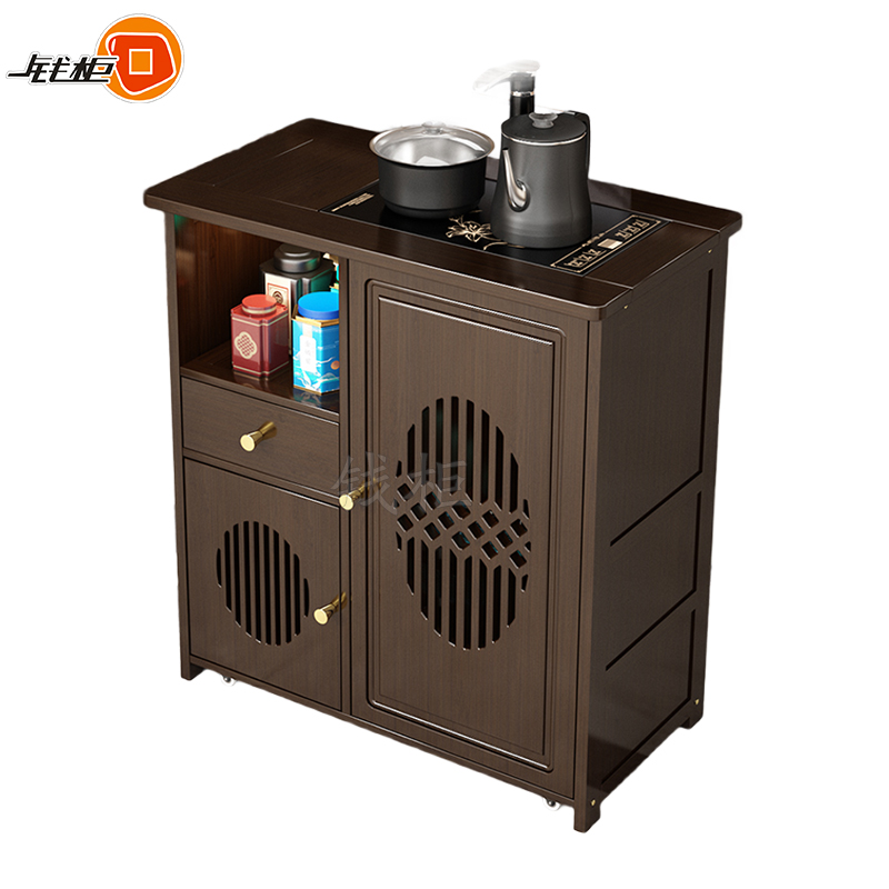 商品标题:钱柜QG100141806847移动茶水柜茶台茶桌置物架水桶烧水壶一体茶吧柜子楠竹单抽茶柜+防烫自动电器(套)