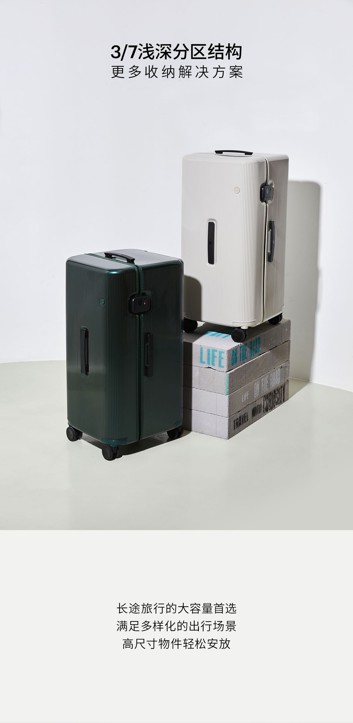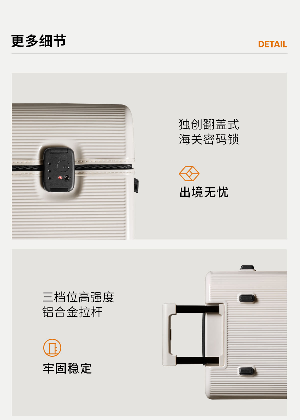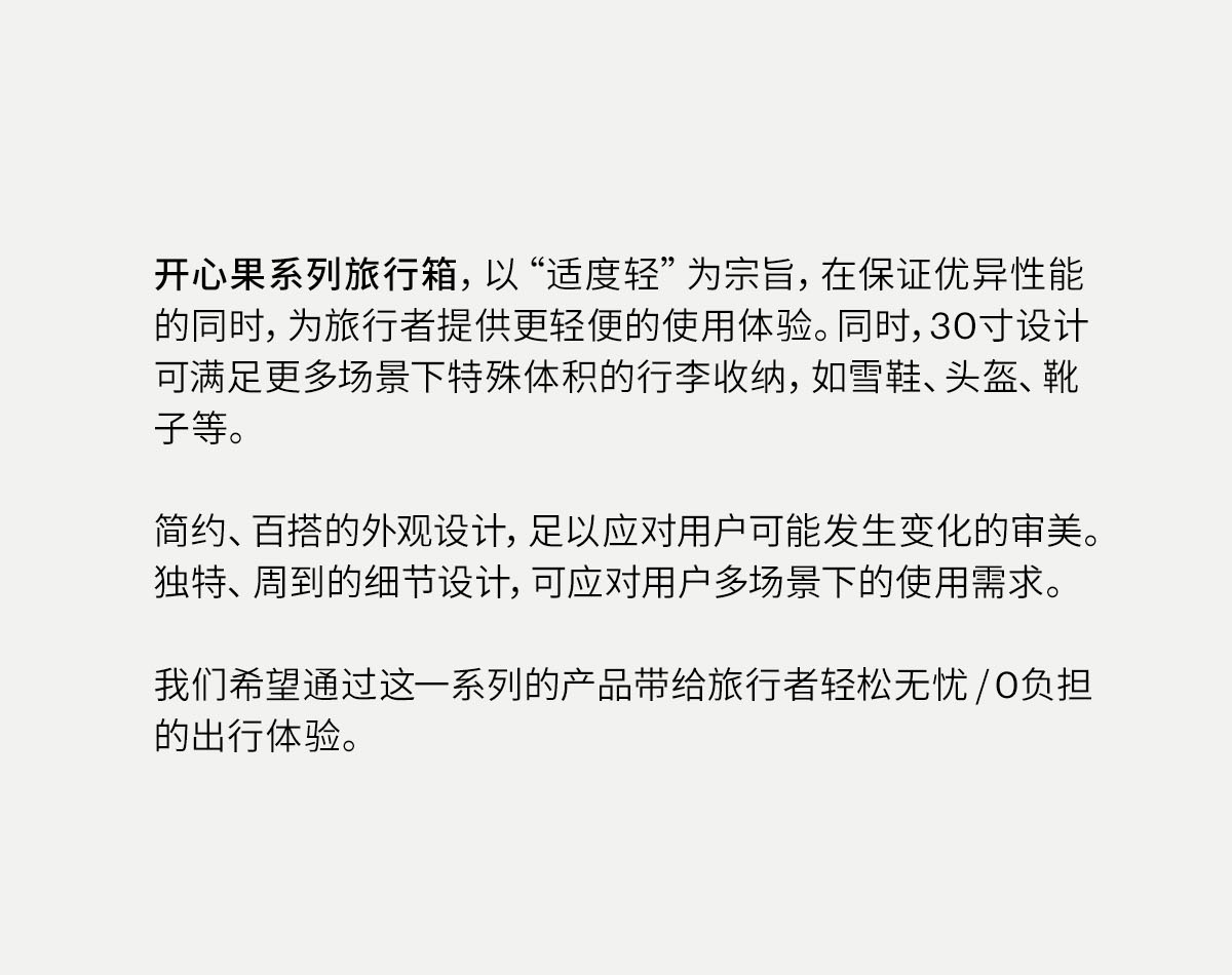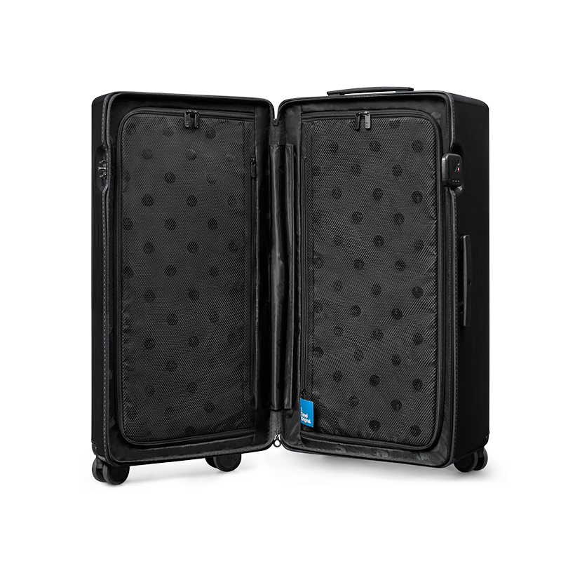 3、原创PEBBLE翻盖锁,隐藏拉链头让外观更加整体整洁,保护拉链头在旅途与托运中不受撞击破环。国际通用TSA密码锁,满足出境需求。