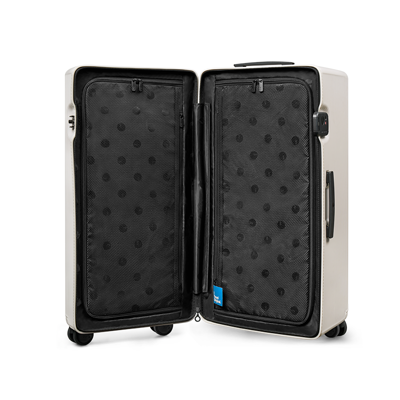 3、原创PEBBLE翻盖锁,隐藏拉链头让外观更加整体整洁,保护拉链头在旅途与托运中不受撞击破环。国际通用TSA密码锁,满足出境需求。