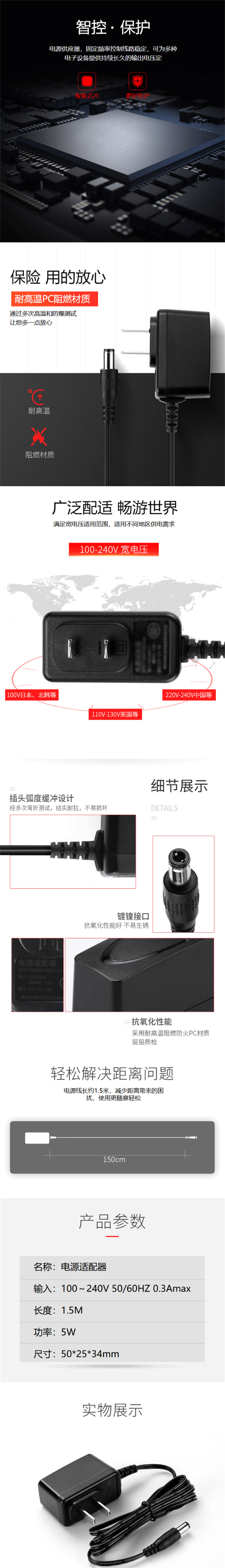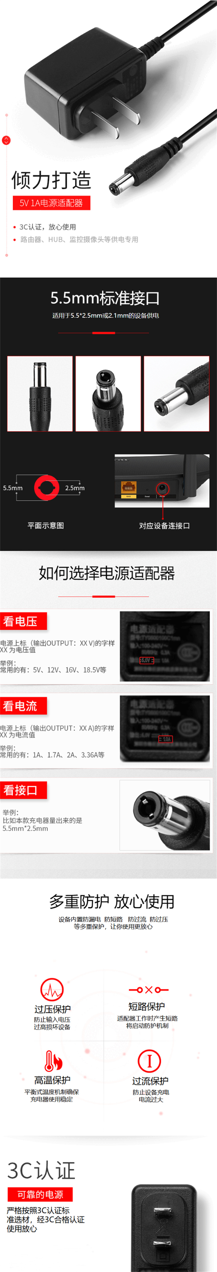 商品标题:绿巨能(llano)5V1A电源适配器 外径5.5mm内径2.5mm /长度1.5米(个)