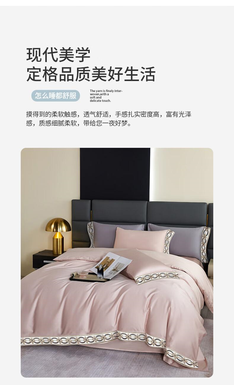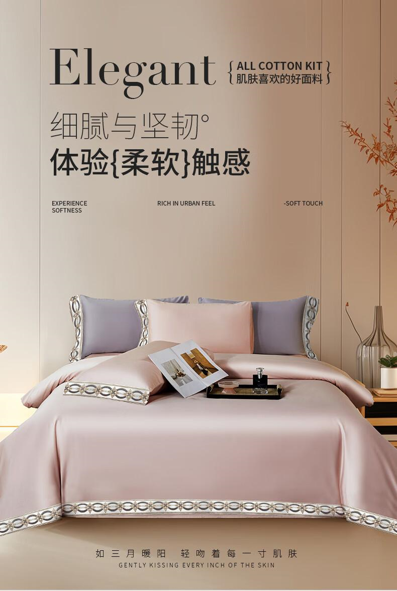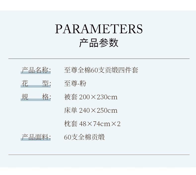 金丝莉(KINTHERI) 至尊全棉60支贡缎四件套 至尊-粉 被套200x230cm (单位:套)