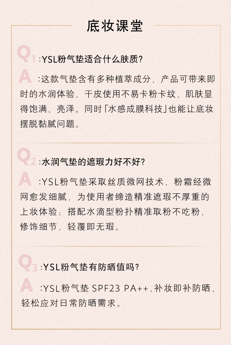 商品标题:圣罗兰(YSL)明彩粉光轻垫粉底液粉气垫B10气垫/粉底(单位:盒)