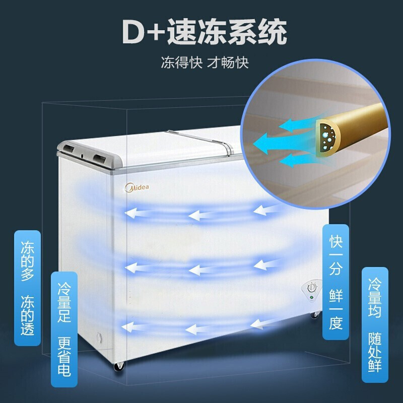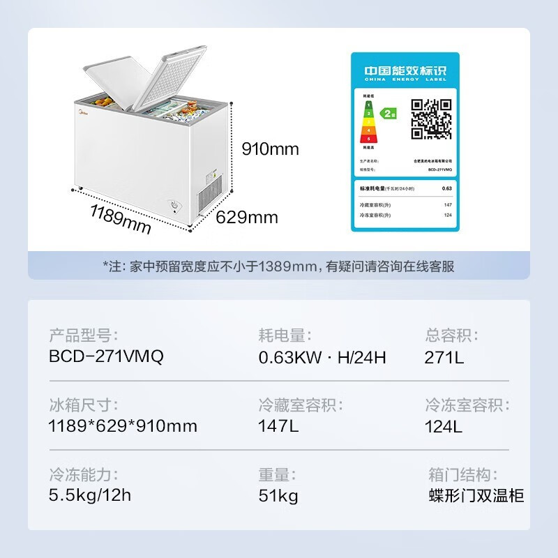 商品标题:美的(Midea)BCD-271VMQ 271升 双温展示柜 大容量冷藏冷冻冷柜 可移动双门玻璃卧式保鲜冰箱(台)