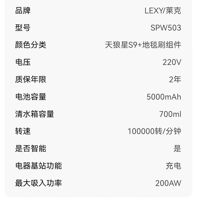 商品标题:莱克(LEXY)SPW503/S9三合一体双滚刷大吸力洗地机(台)