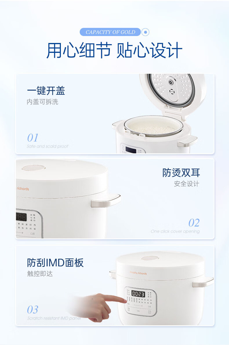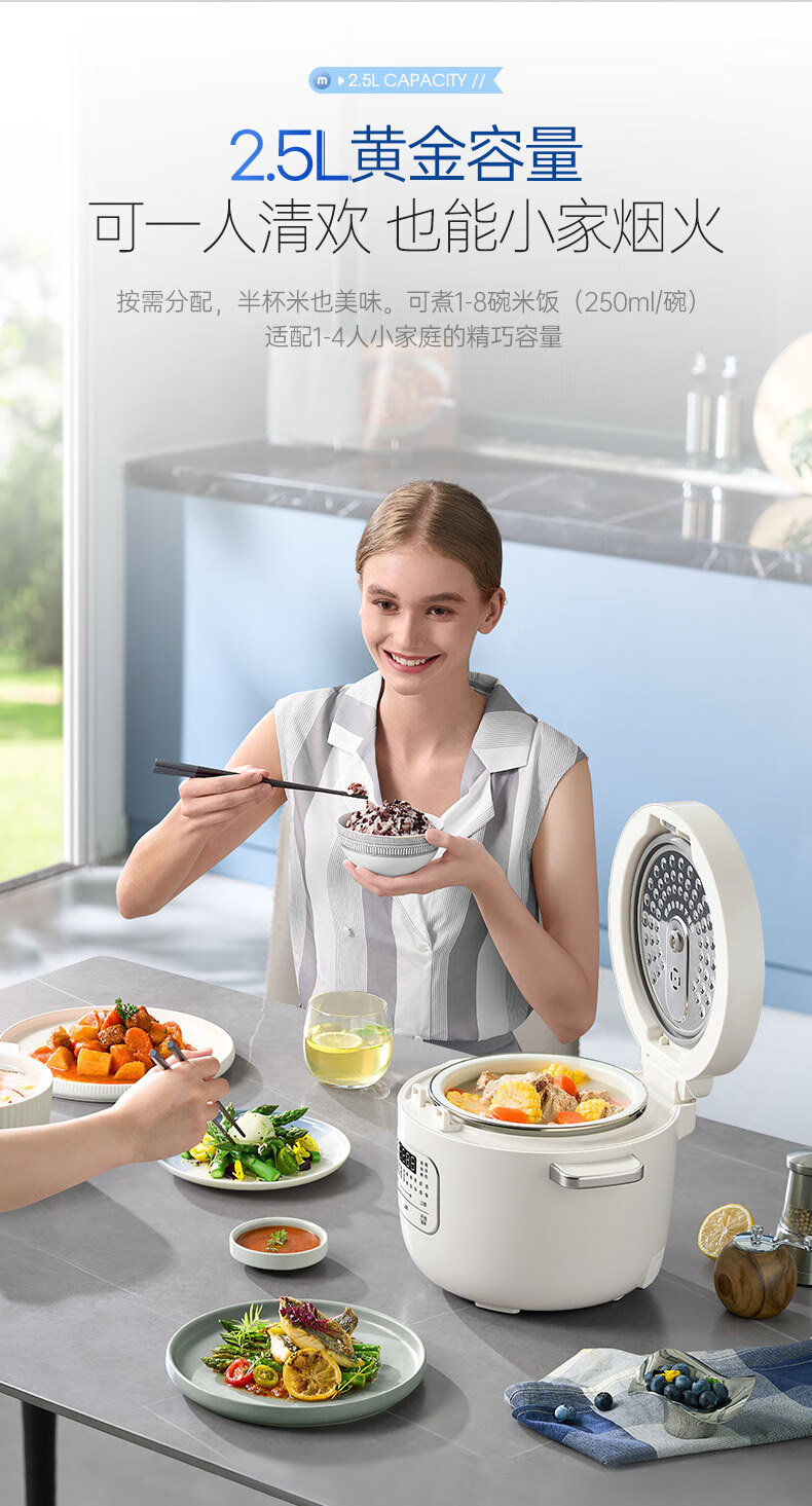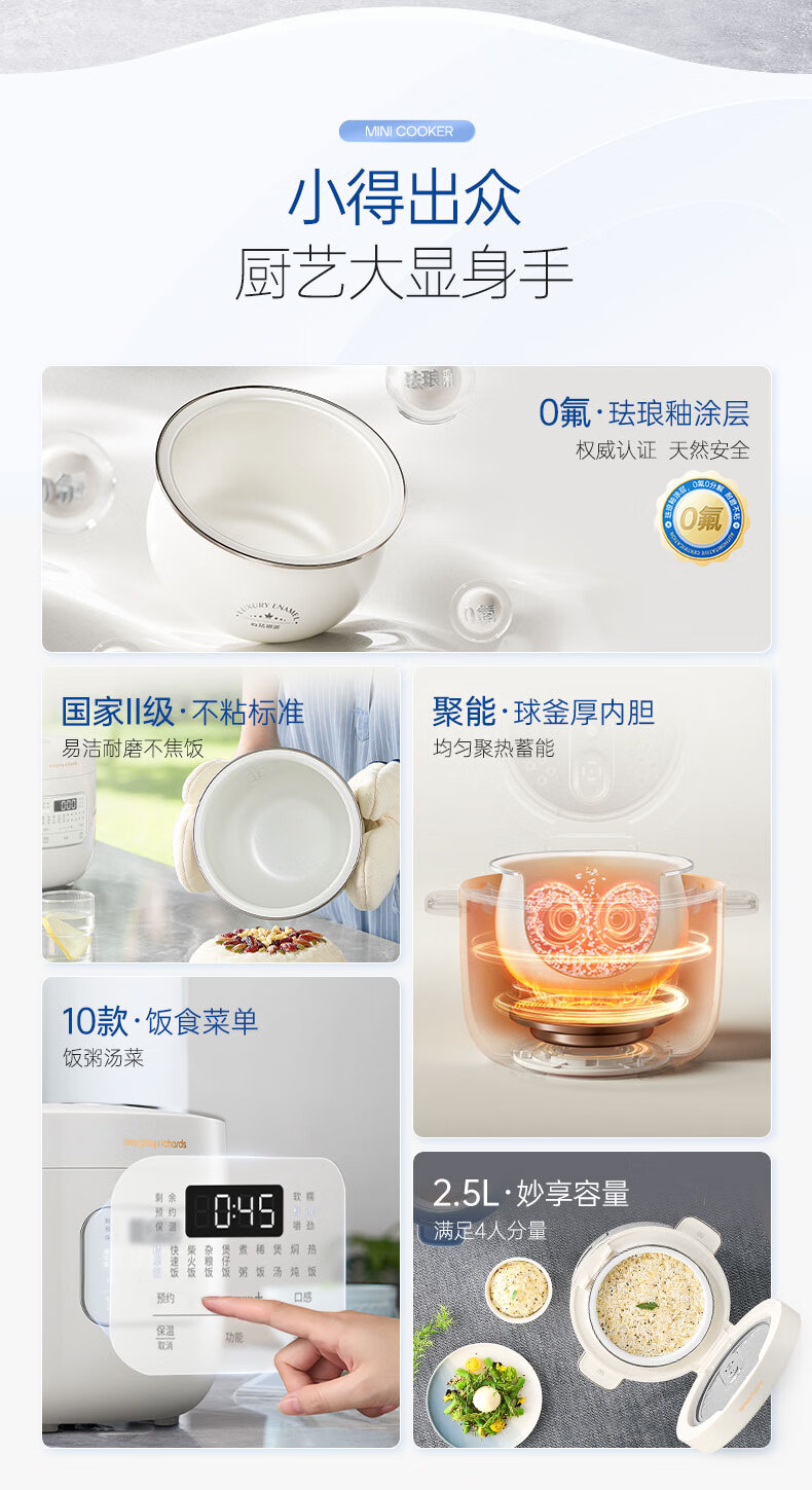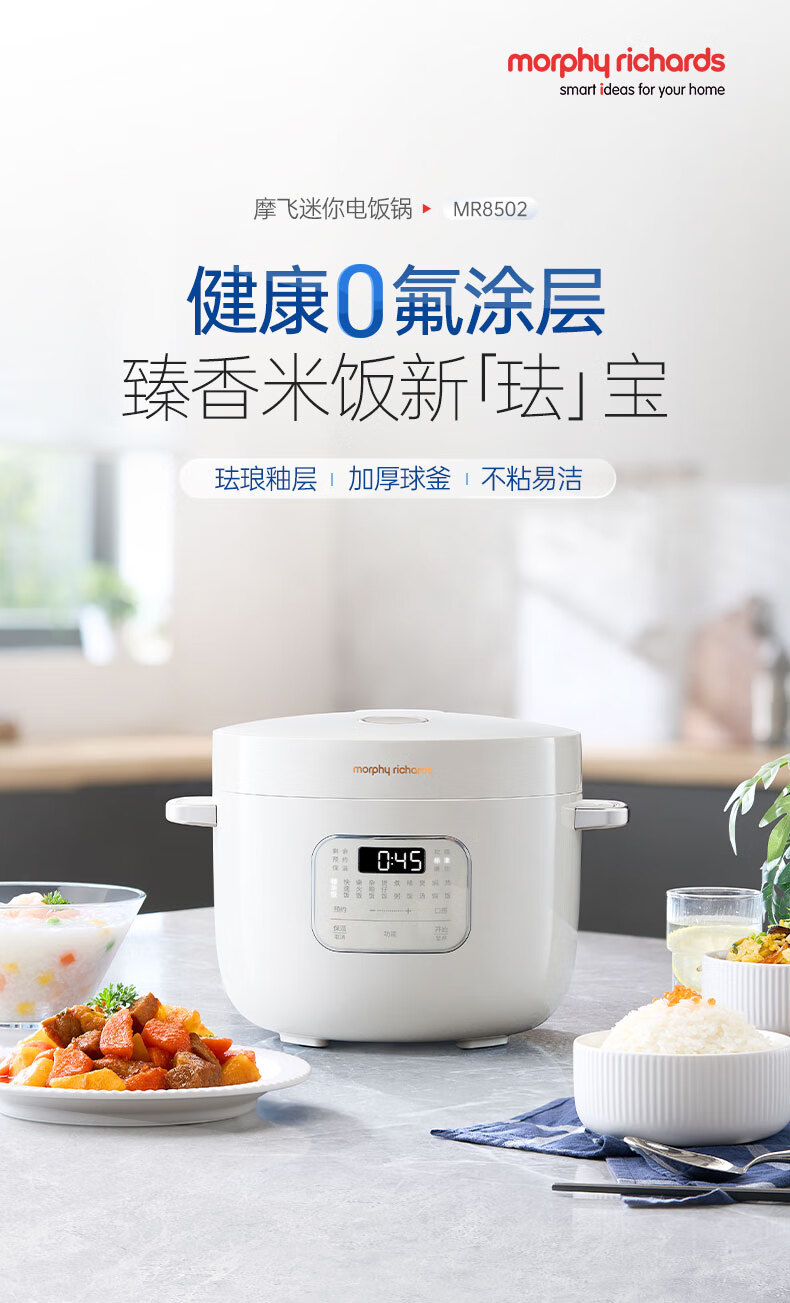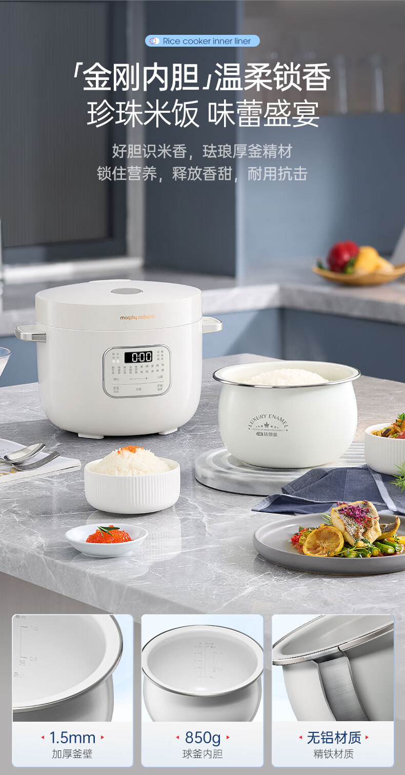 摩飞电器(Morphyrichards)电饭煲电饭锅 家用2.5L迷你珐琅釉精釜多功能2-3人小电饭煲电火锅煲汤锅电煮锅煮饭煲MR8502白(单位:台)