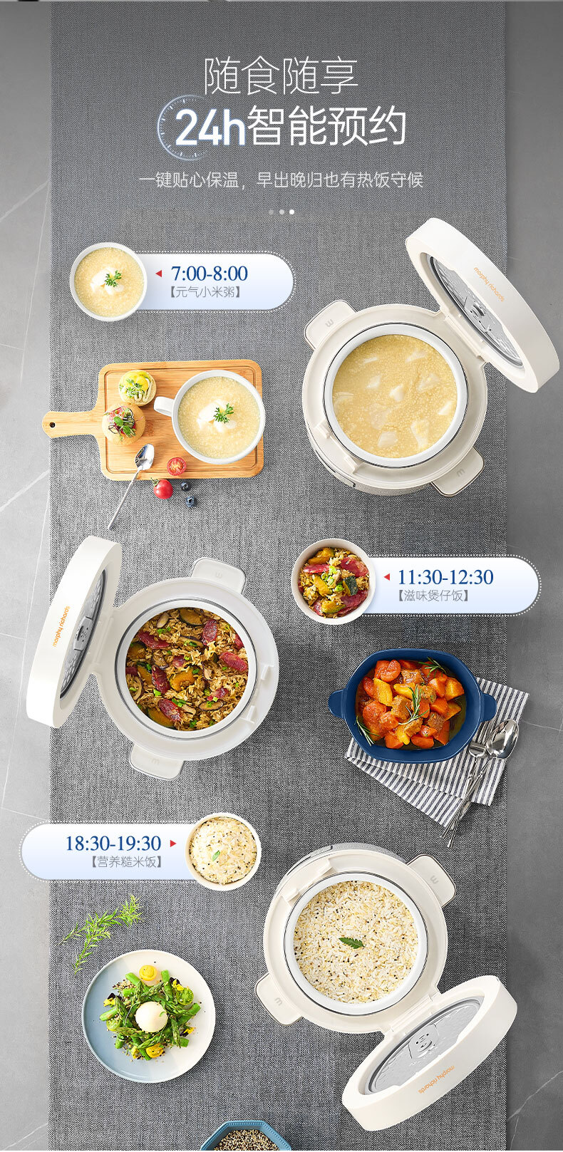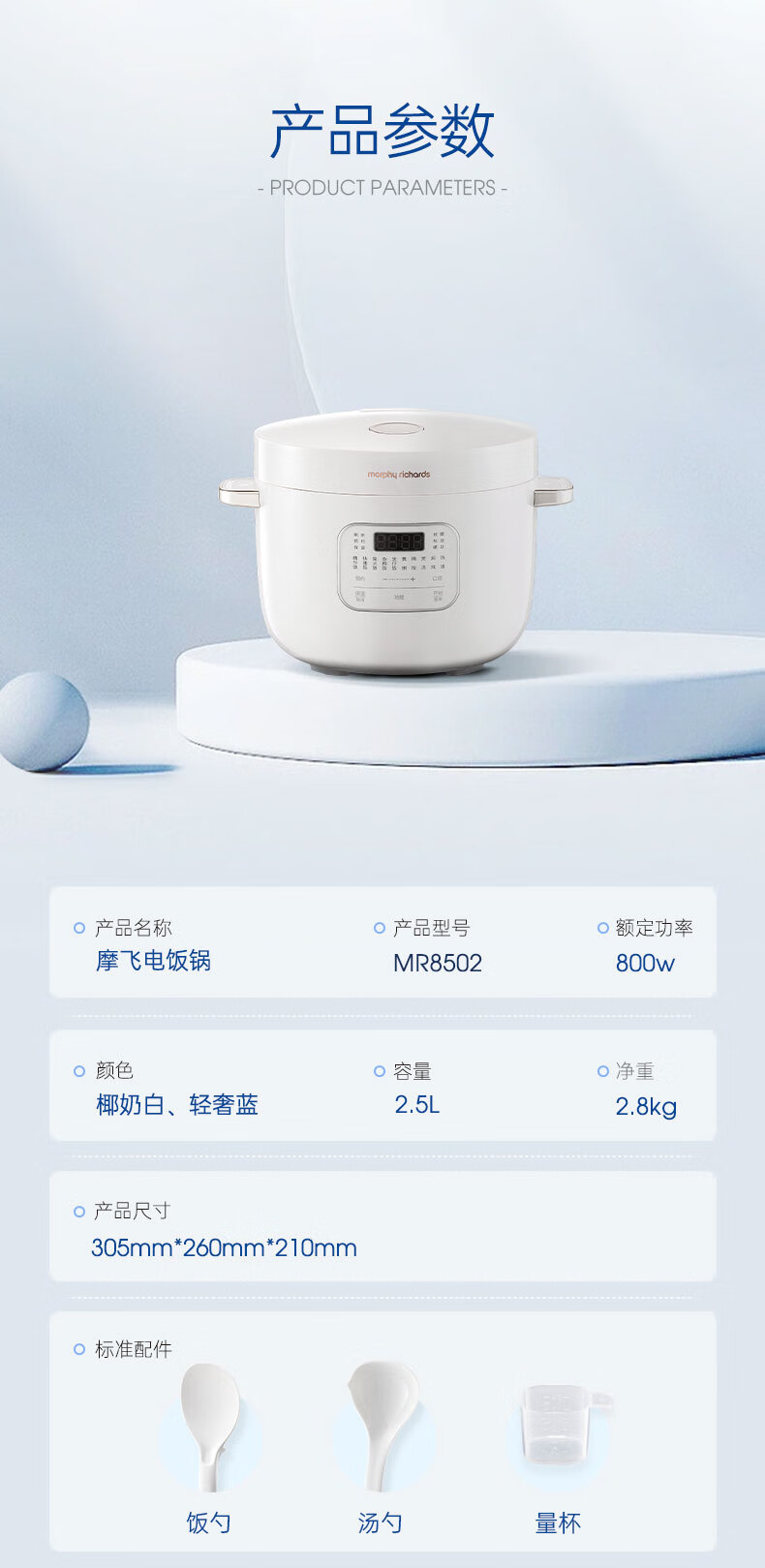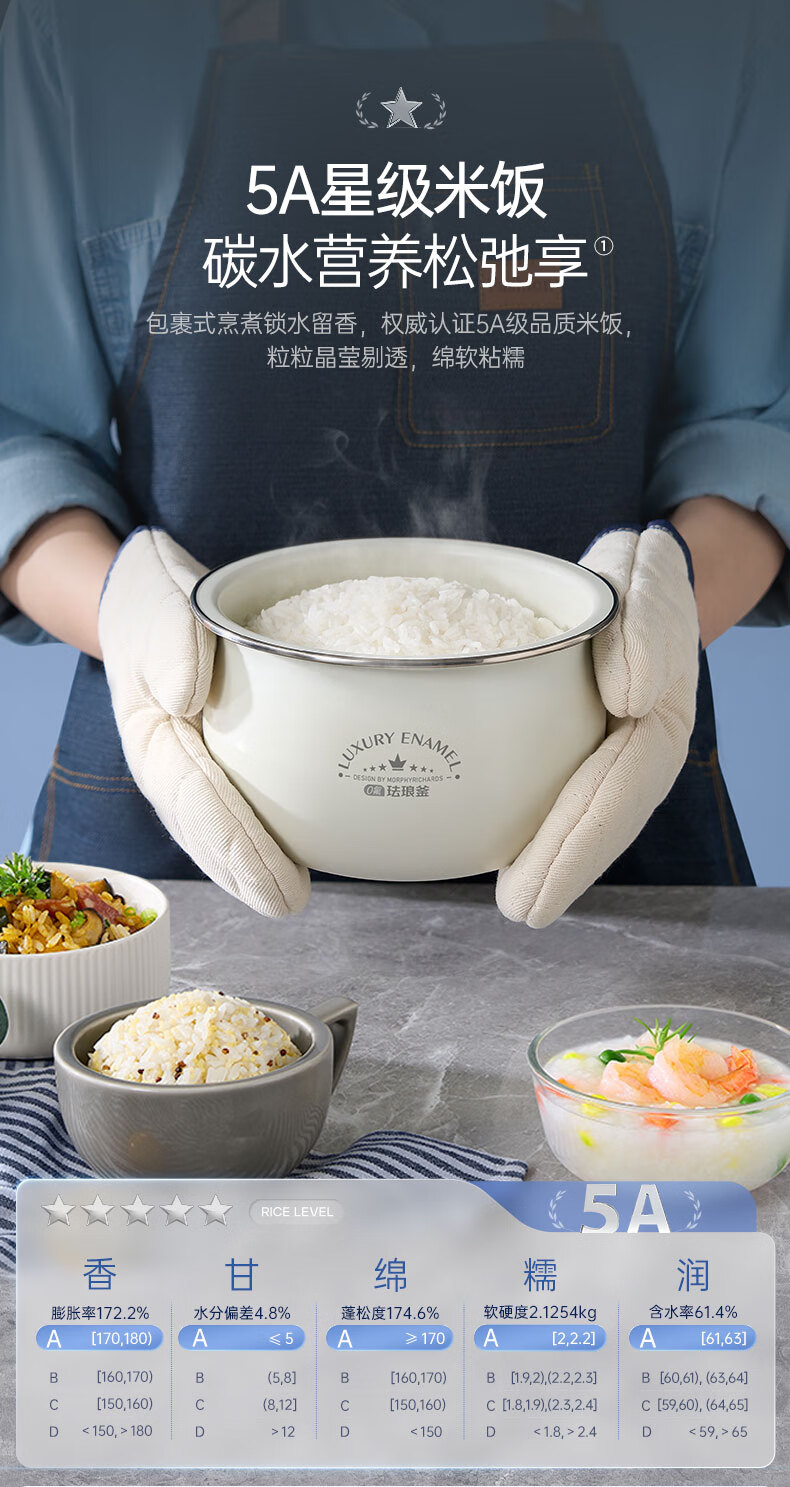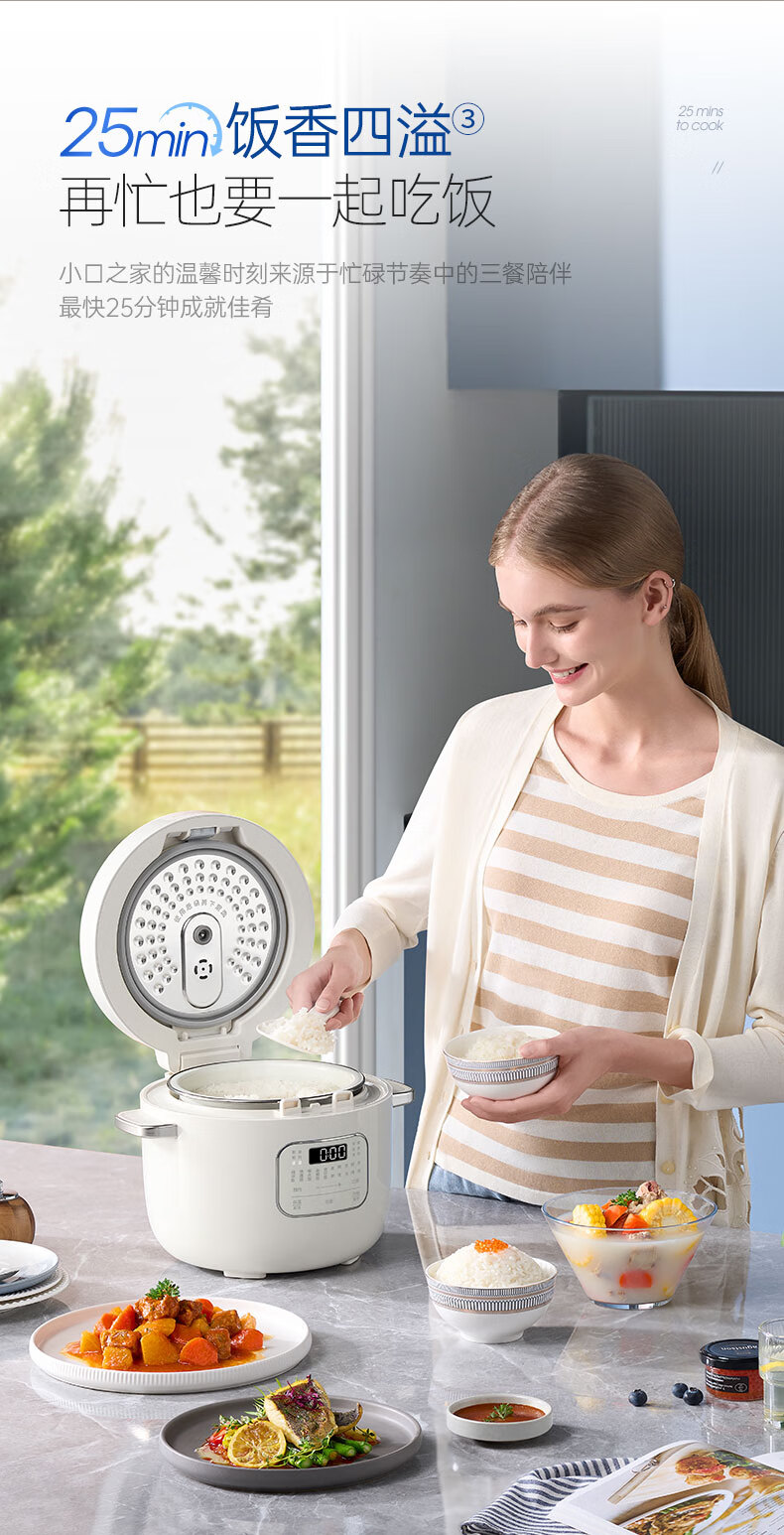 摩飞电器(Morphyrichards)电饭煲电饭锅 家用2.5L迷你珐琅釉精釜多功能2-3人小电饭煲电火锅煲汤锅电煮锅煮饭煲MR8502白(单位:台)