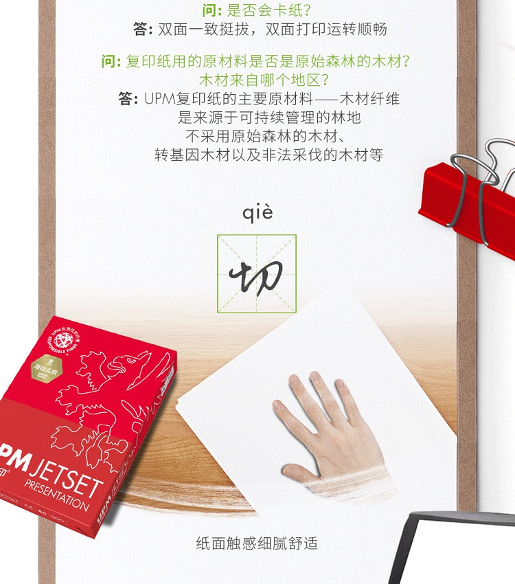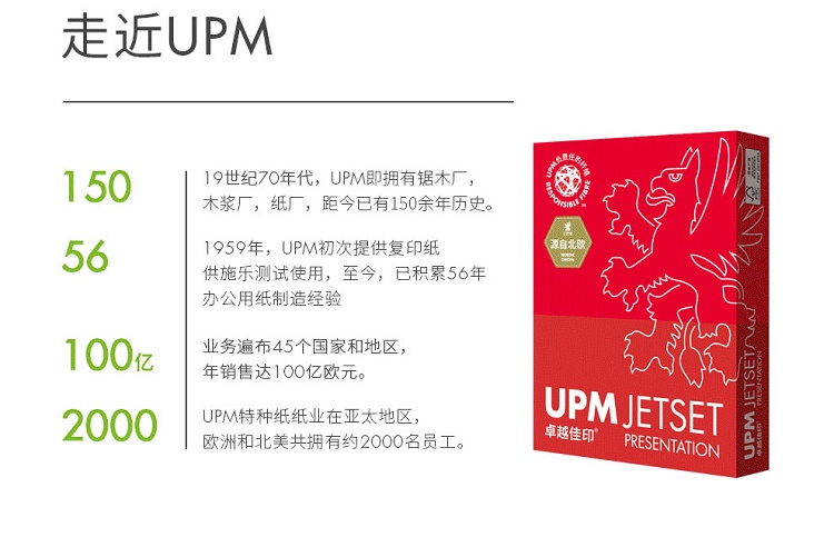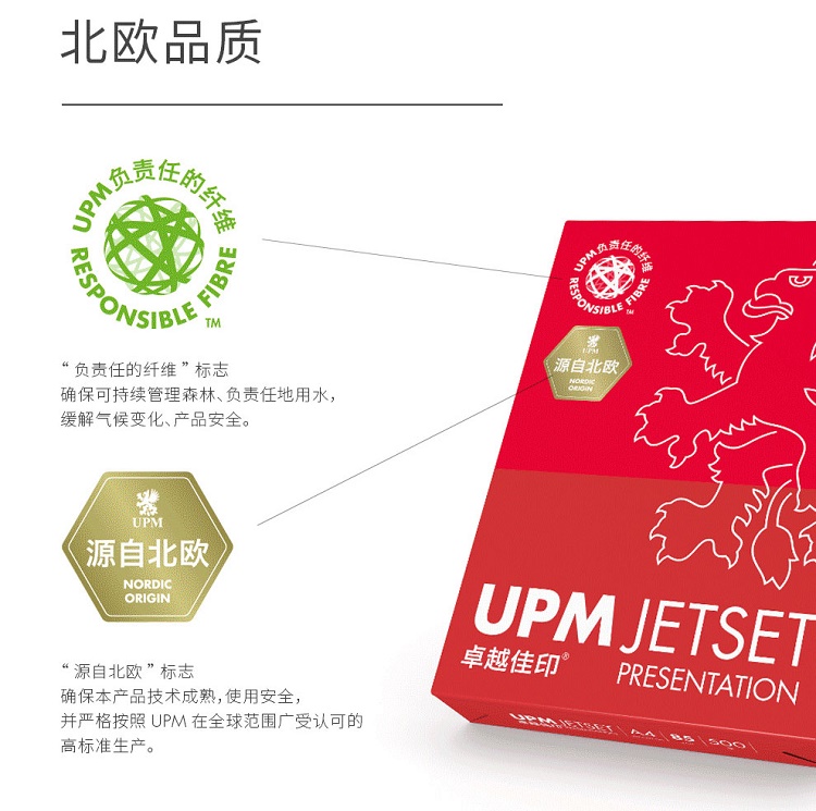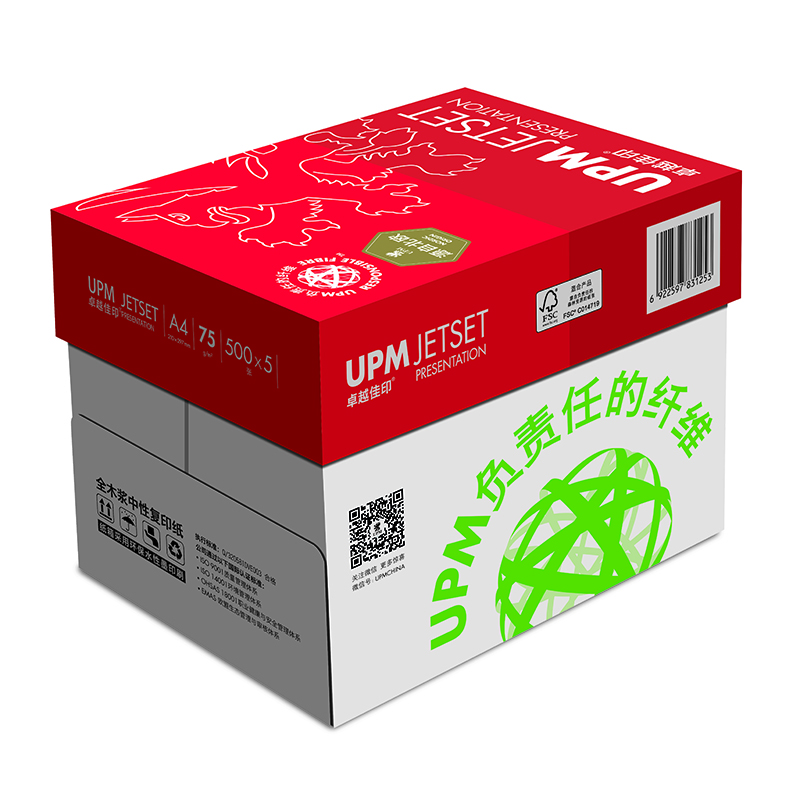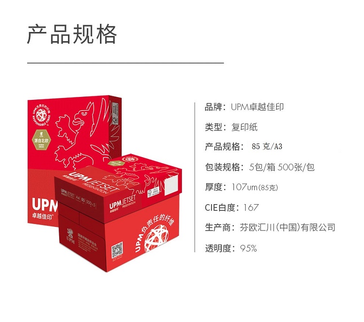 商品标题:UPM卓越佳印85克/A3复印纸500张/包5包/箱(箱)
