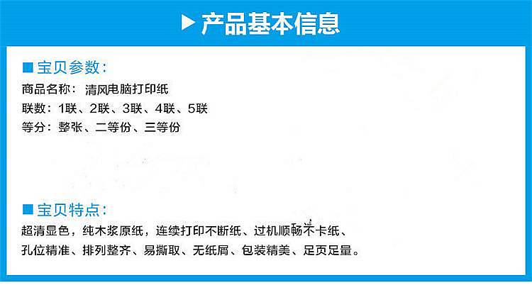 商品标题:清风 241-4-3-C-S 打印纸三等分带压线 彩色 1000页/箱 (单位:箱)241四联三等分彩色撕边