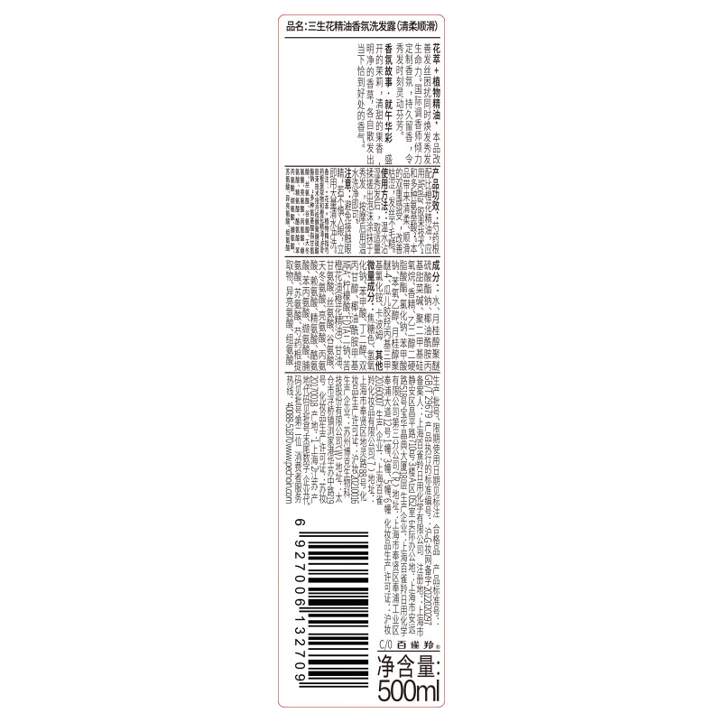 百雀羚三生花精油香氛水润顺滑洗发露500ml(瓶)