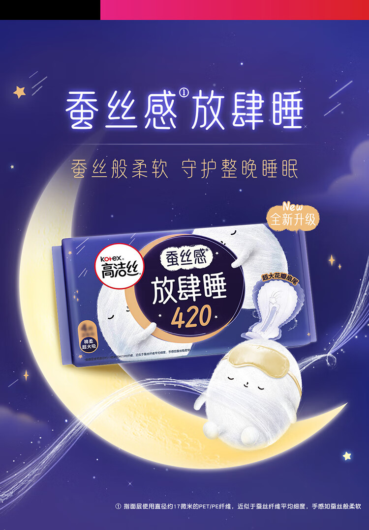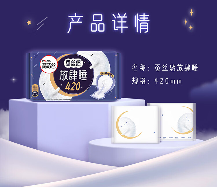 商品标题:高洁丝Kotex 放肆睡 超长夜用棉柔丝薄卫生巾 420mm 4片(单位:包)