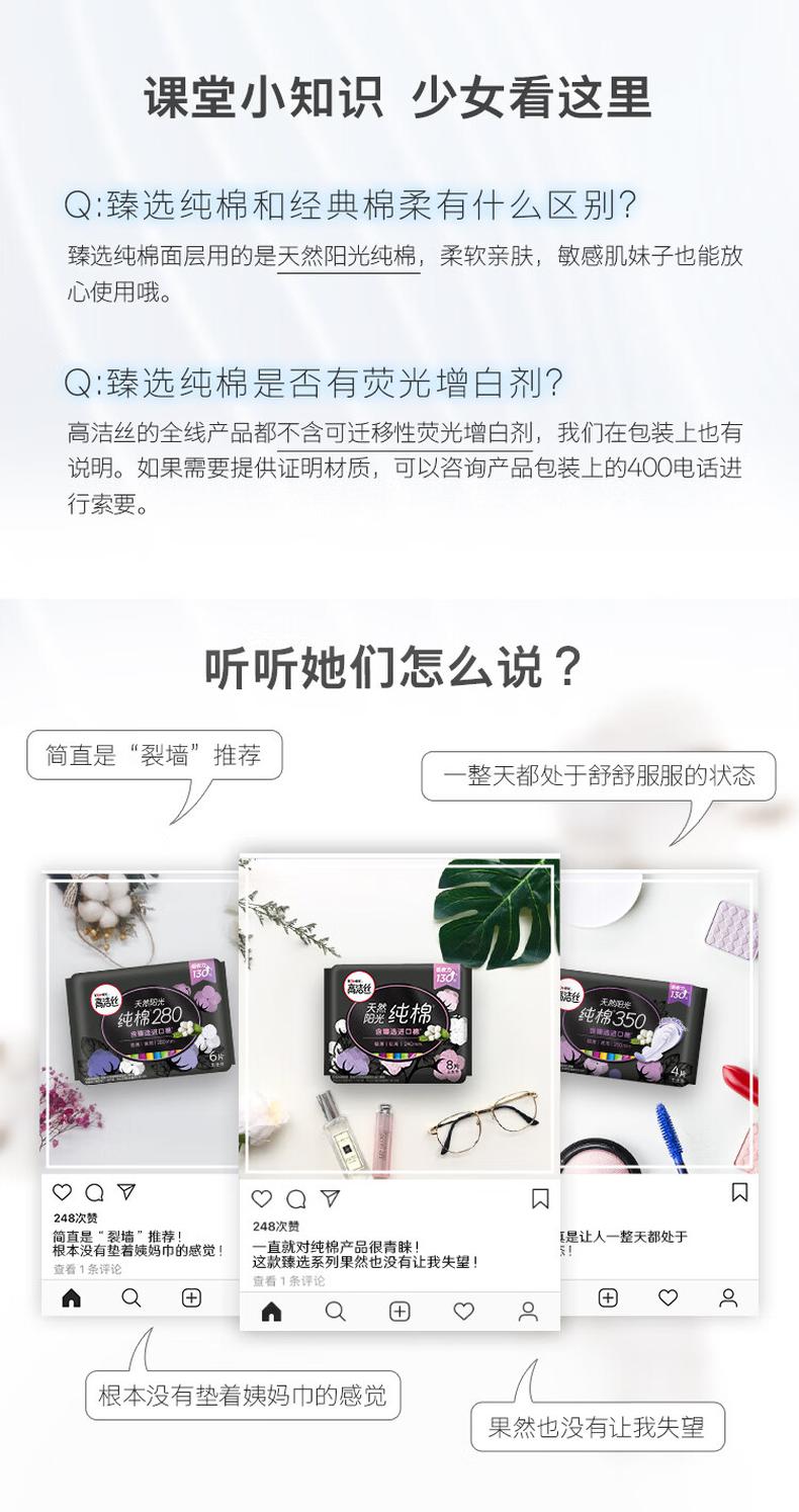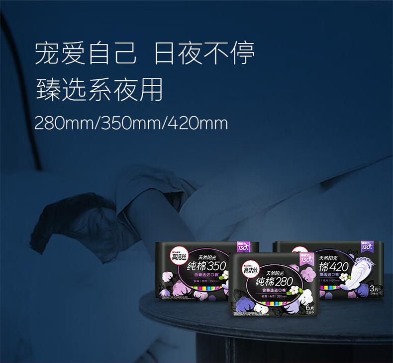商品标题:高洁丝(Kotex)臻选澳洲进口纯棉0.08极薄吸收芯280mm6片(包)