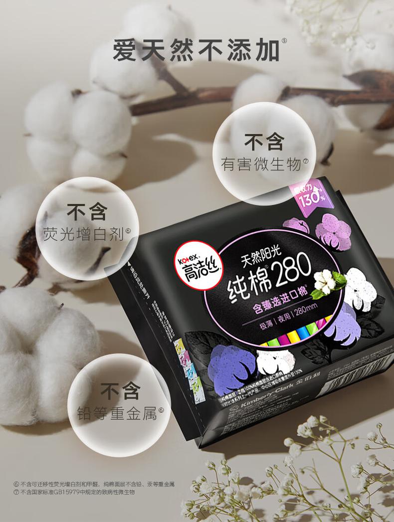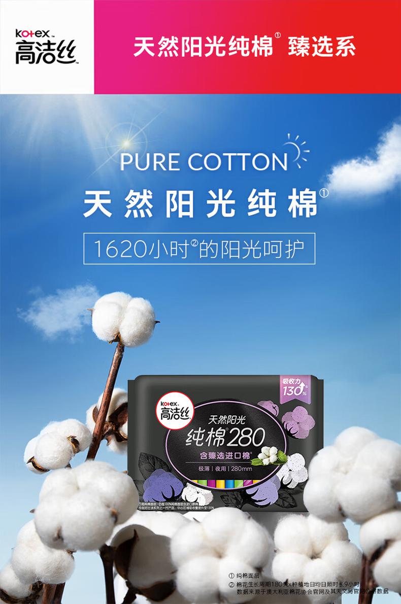 高洁丝(Kotex)臻选澳洲进口纯棉0.08极薄吸收芯280mm6片(包)