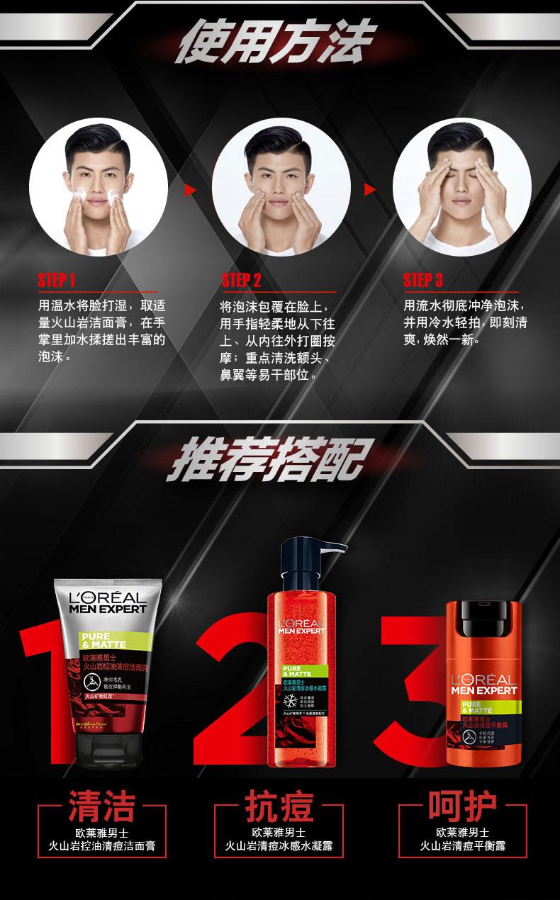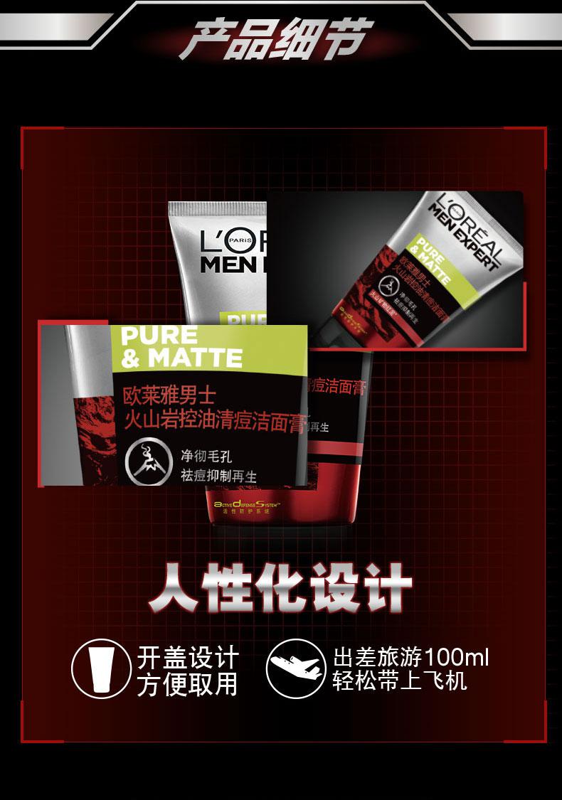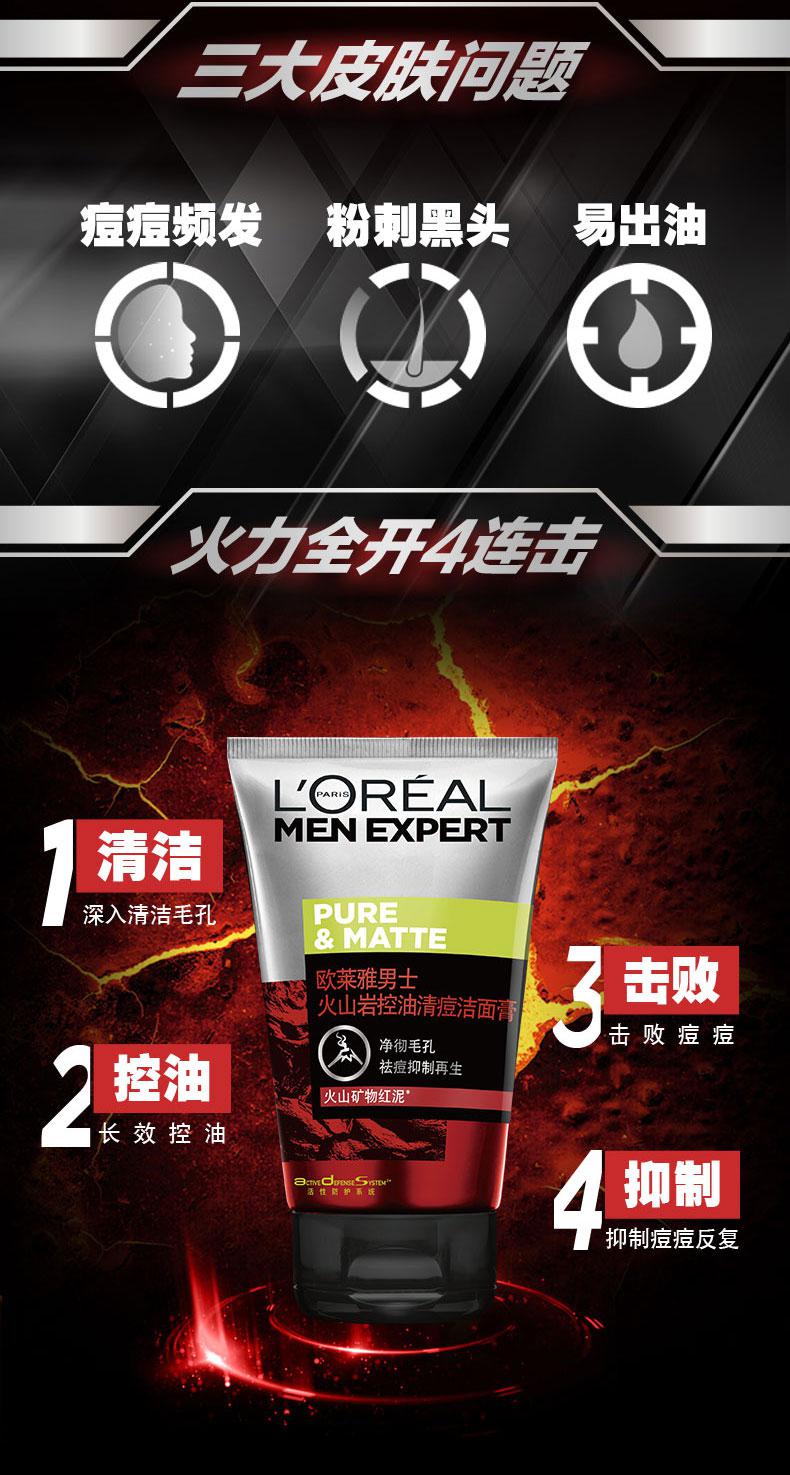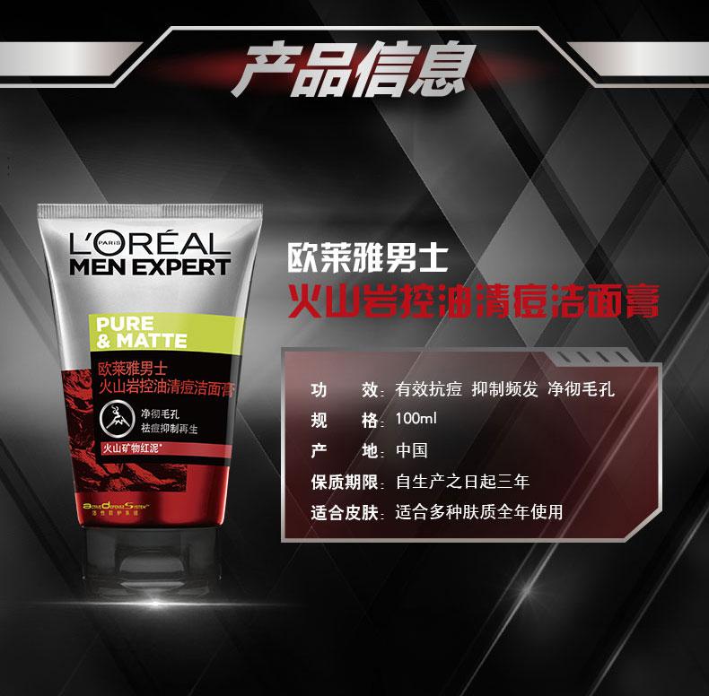 商品标题:欧莱雅(LOREAL)男士火山岩控油清痘洁面膏 100ml(支)