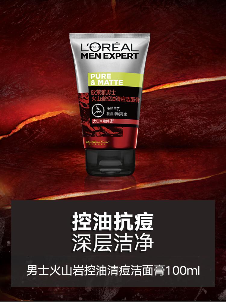 欧莱雅(LOREAL)男士火山岩控油清痘洁面膏 100ml(支)