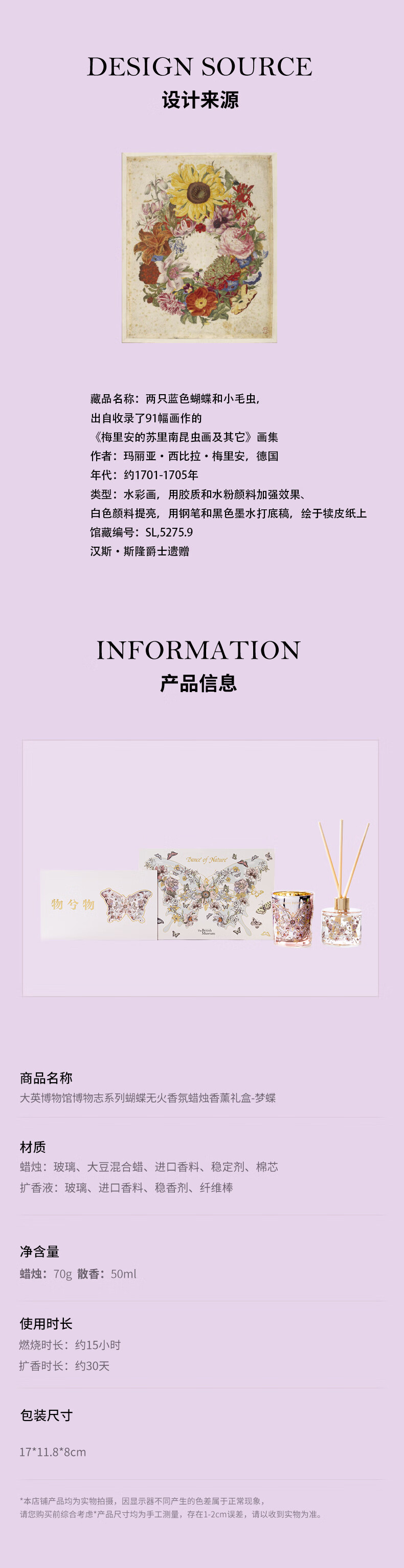 商品标题:大英博物馆 博物志蝴蝶梦境卧室香氛蜡烛香薰礼盒(单位:盒)