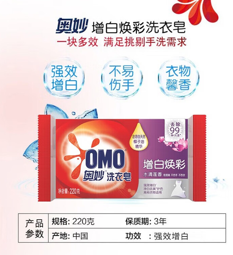 商品标题:奥妙强效增白洗衣皂220g(块)