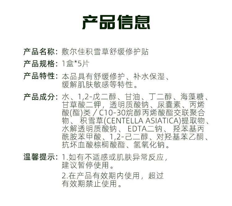 商品标题:敷尔佳积雪草舒缓修护贴面膜 26g*5贴/盒(单位:盒)