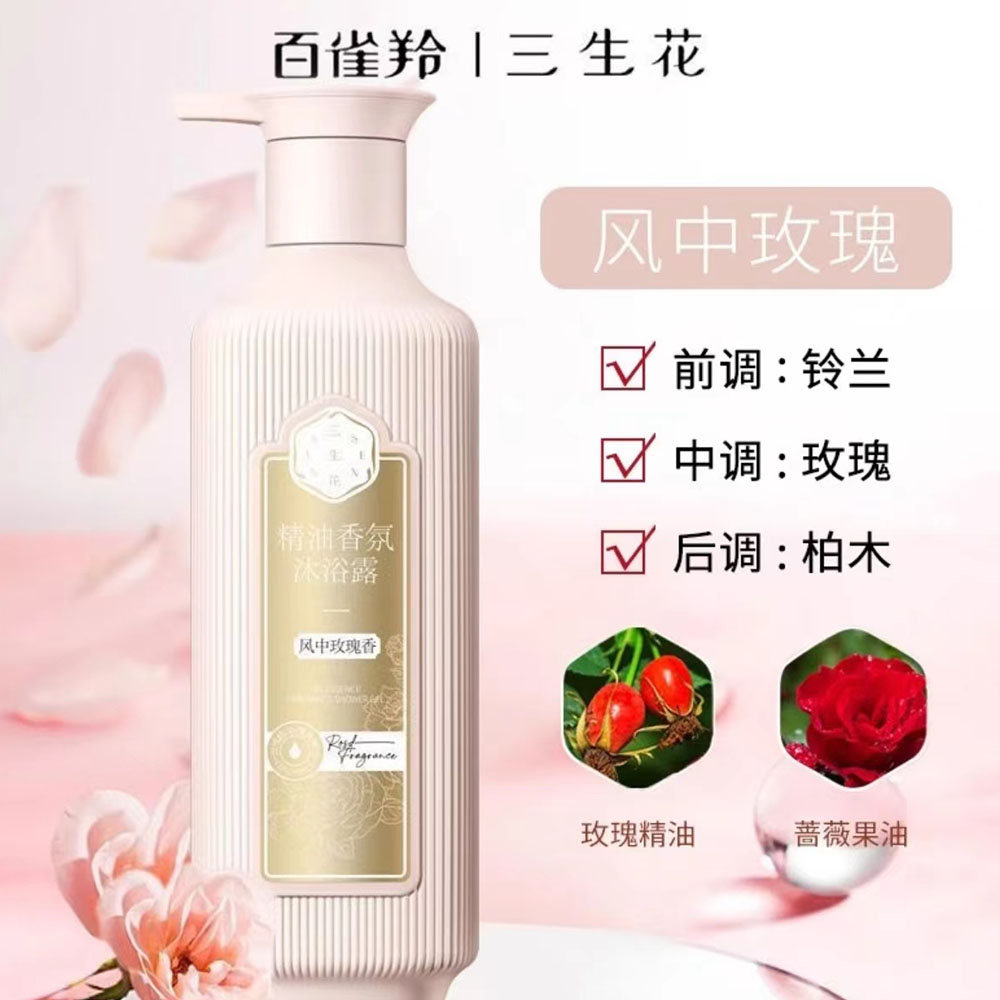 百雀羚精油香氛玫瑰滋养护肤三生花沐浴露800ml(瓶)