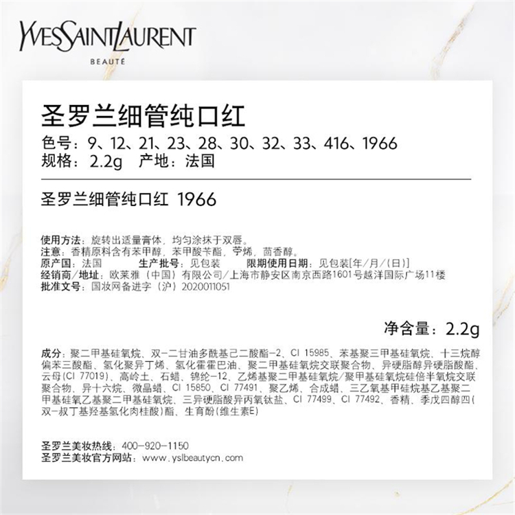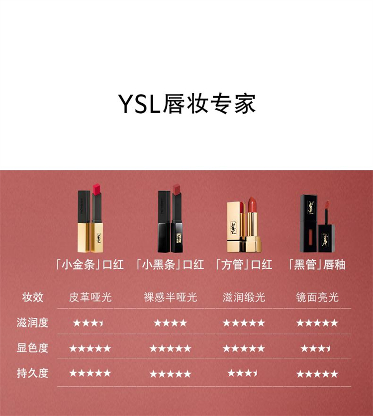 商品标题:圣罗兰 2.2g小金条哑光新色1966红棕色口红(支)