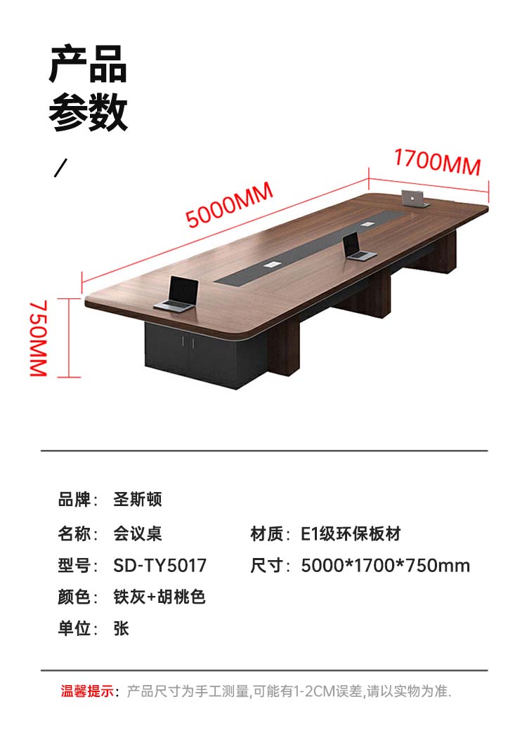 商品标题:圣斯顿SD-TY5017会议桌5000*1700*750mm(张)铁灰+胡桃