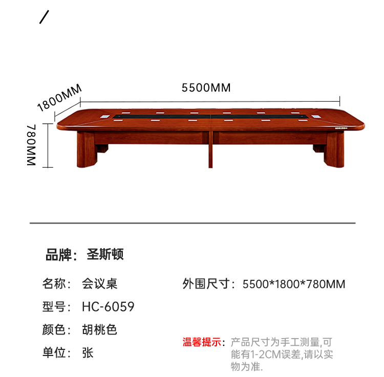 圣斯顿HC-6059中式会议桌培训桌5500*1800*780 mm(单位:张)胡桃色