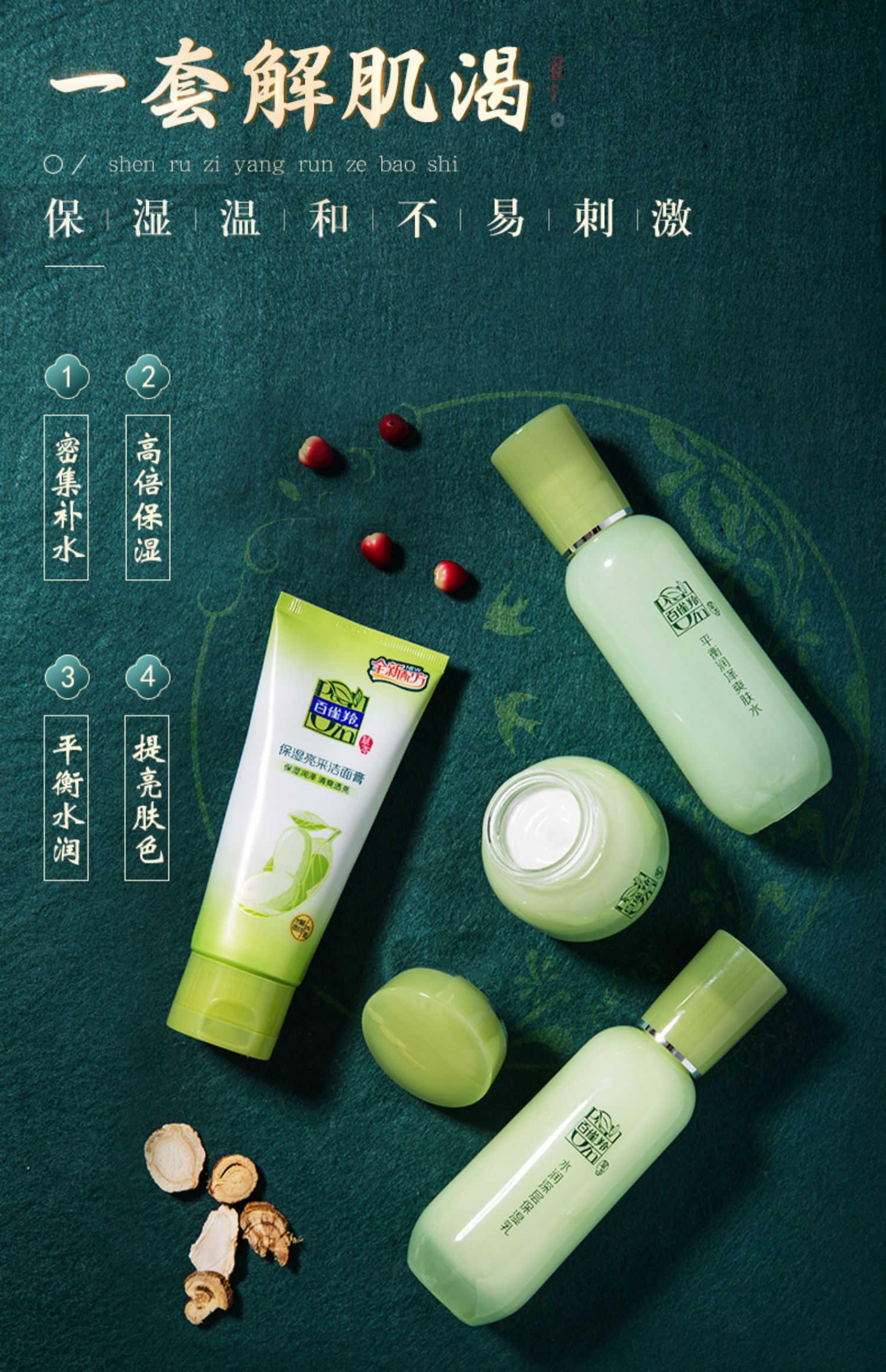 型号:洁面膏95g+爽肤水100ml+保湿乳100g+精华霜50g