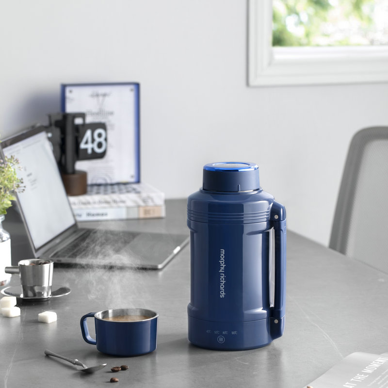 摩飞电器(Morphyrichards)电水壶 便携式烧水壶家用旅行户外大容量电热水壶保温壶 双层不锈钢防烫电热水杯MR6061轻奢蓝 1L(单位:台)