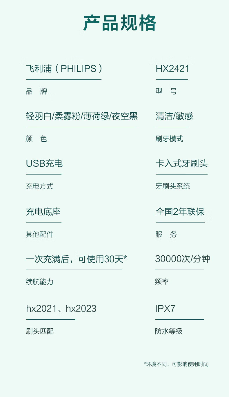 商品标题:飞利浦(PHILIPS)HX2421电动牙刷 混色 批采(单位:支)