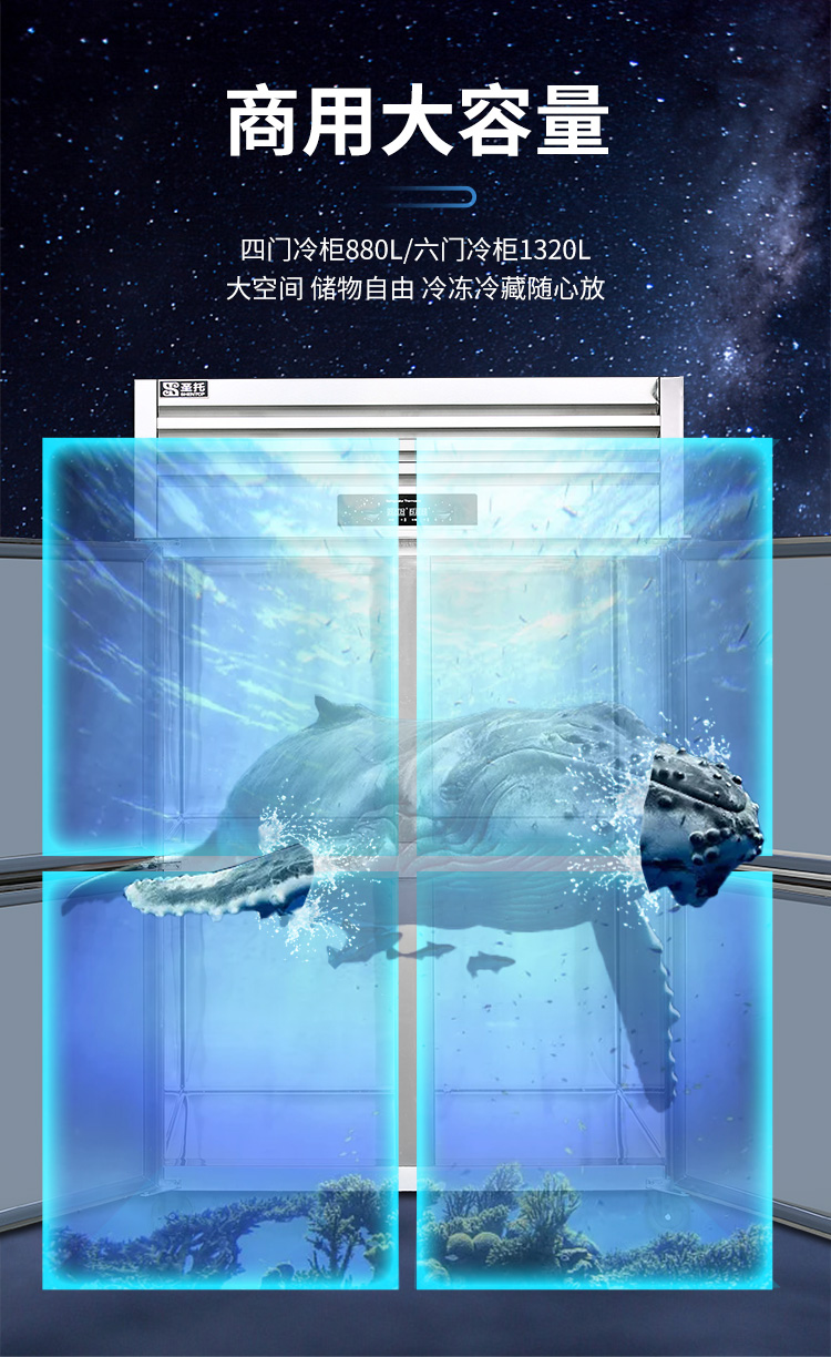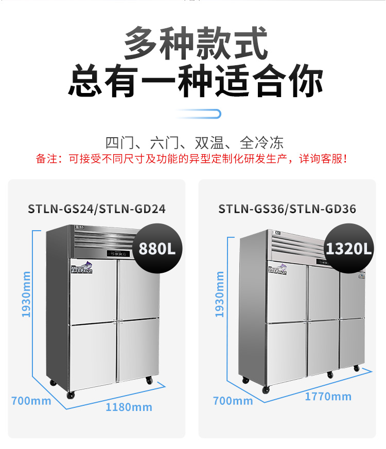 圣托(Shentop)STLN-GS36 冷藏冷冻双温立式冷柜 厨房冷藏柜保鲜展示柜 六门冰柜商用大型冰箱(单位:台)