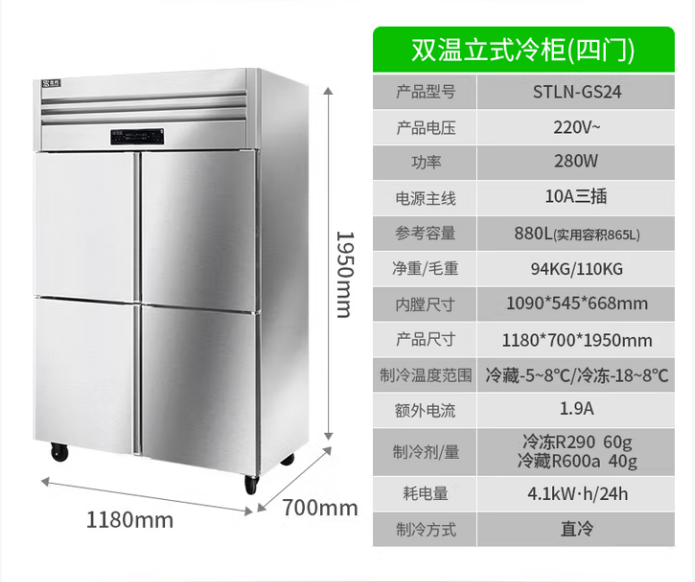 商品标题:圣托 STLN-GS24 880升四门 冰箱
