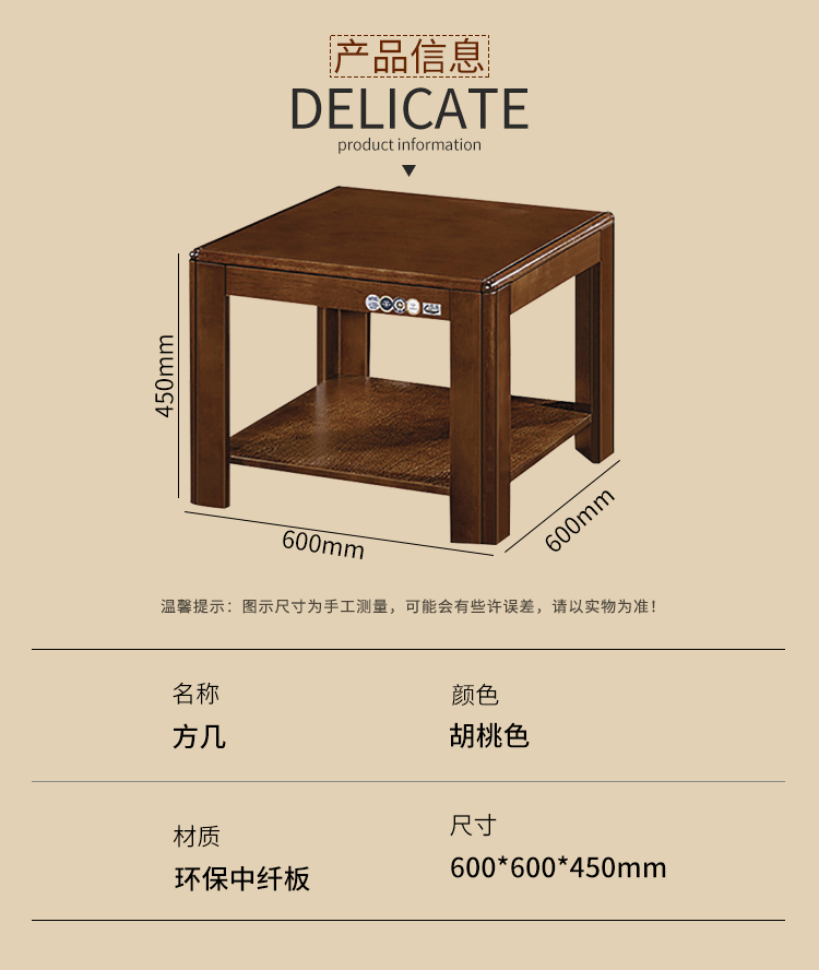 商品标题:企诺CJ-10茶几方几会客茶桌胡桃色600*600*450mm(张)