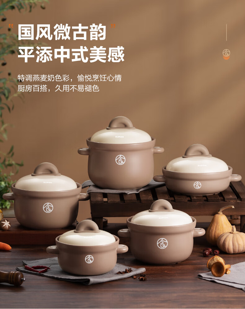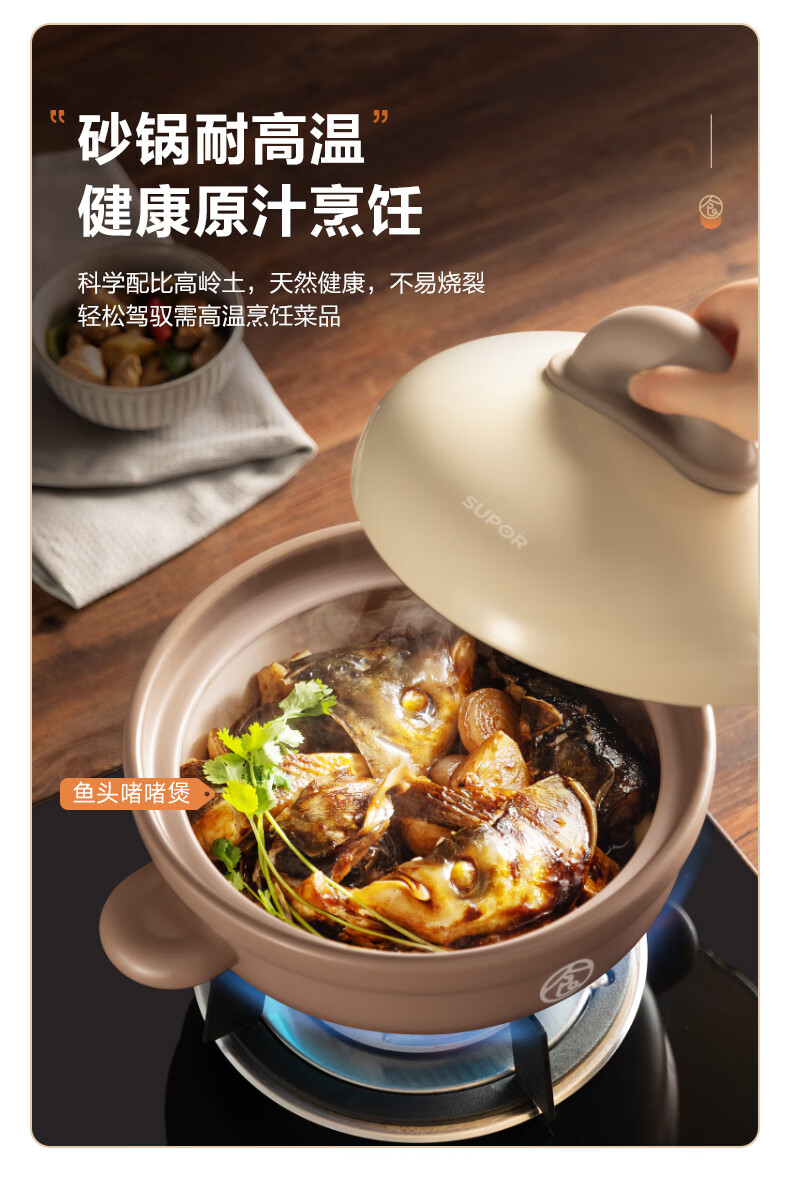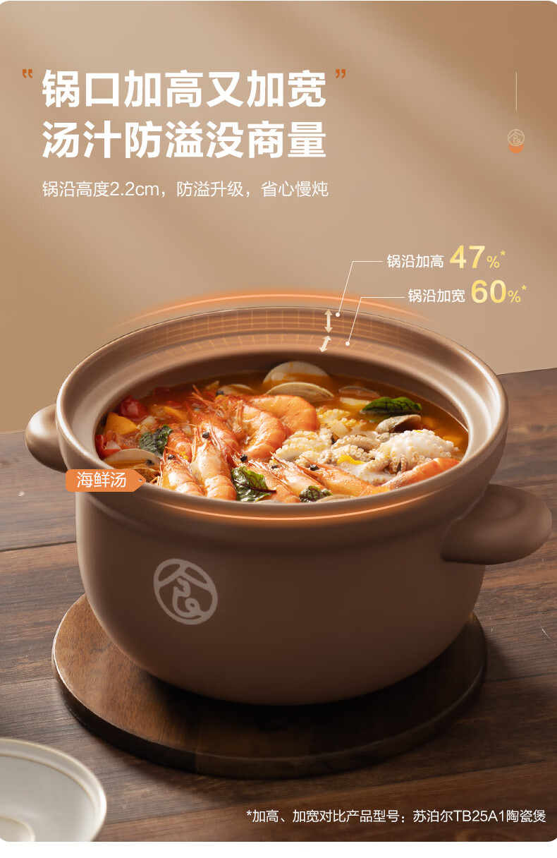 苏泊尔SUPOR 纷彩系列陶瓷煲家用煲汤砂锅6.0L大容量深汤煲炖锅TB60UA1