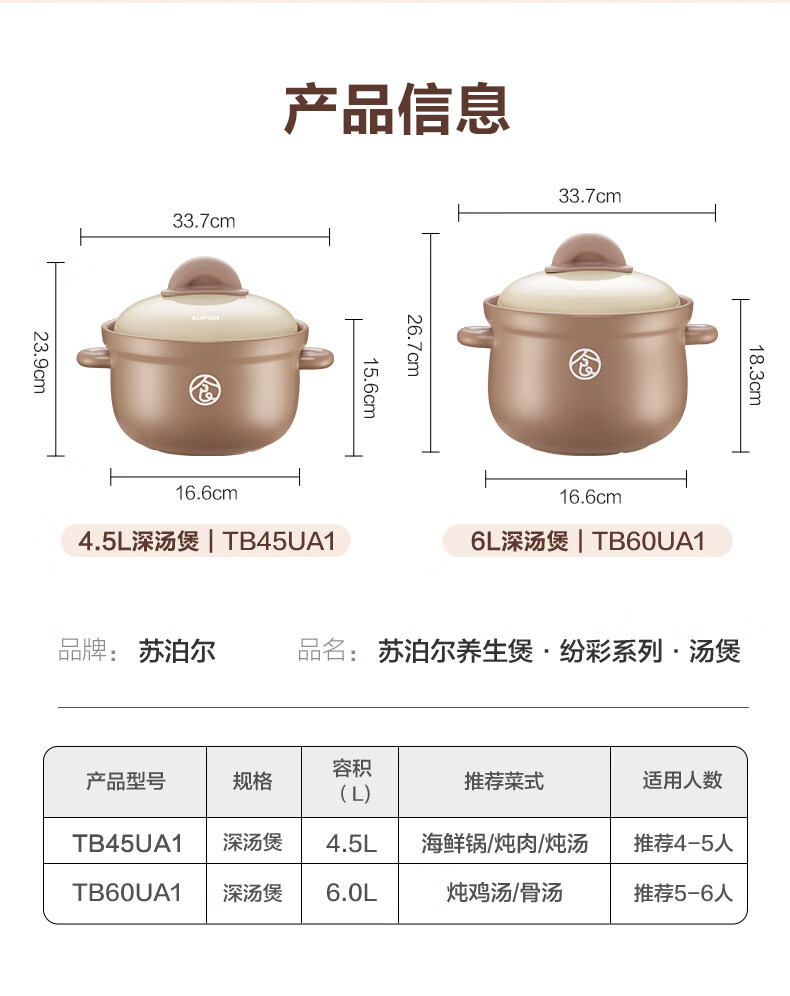商品标题:苏泊尔SUPOR 纷彩系列陶瓷煲家用煲汤砂锅6.0L大容量深汤煲炖锅TB60UA1