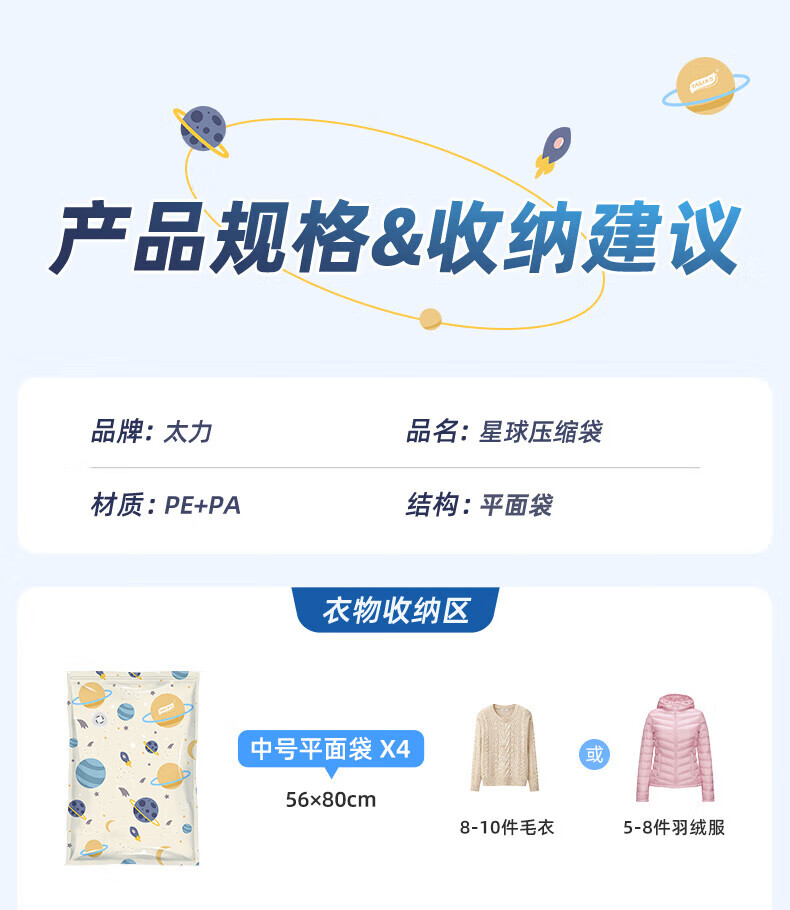 商品标题:太力AZ436星球-真空袋(9件)(单位:套)