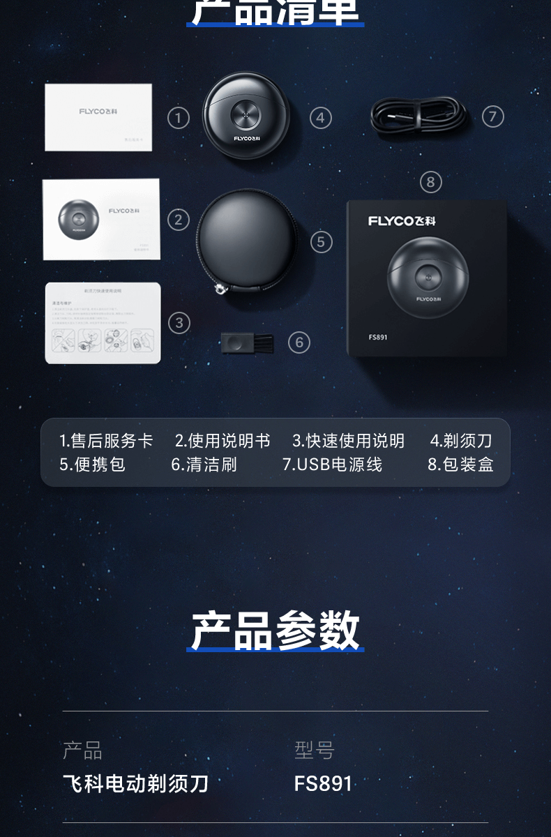 飞科(FLYCO)FS891电动剃须刀 新老版本随机发货(台)
