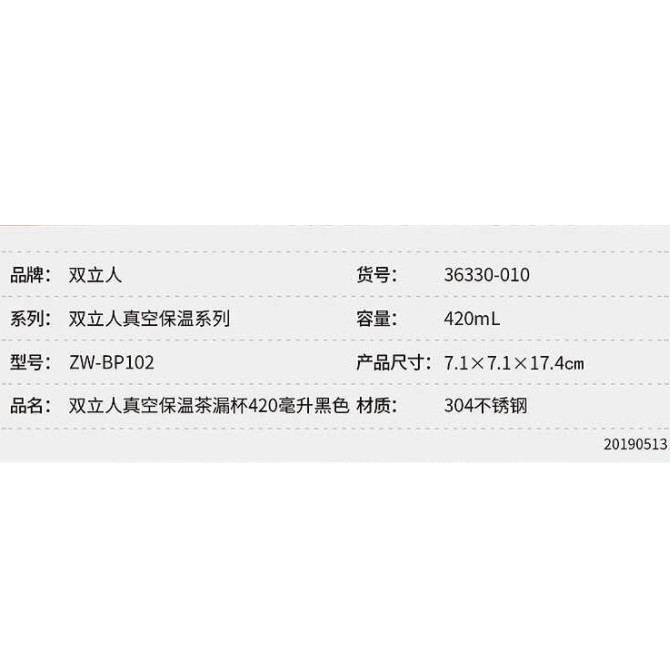 商品标题:双立人ZW-BP102/36330-010真空保温杯黑色420ml(个)