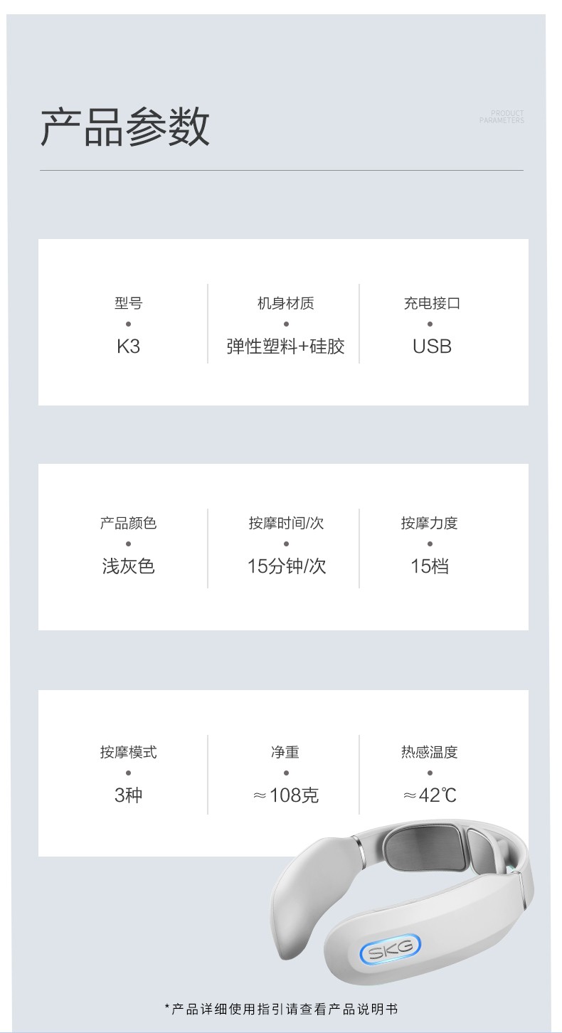 商品标题:SKG按摩仪器K3语音播报款颈椎按摩器5W纯白色(个)