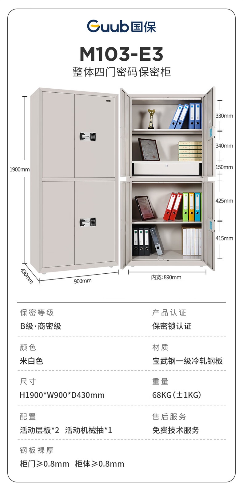 商品标题:国保M103-E2整体双门保密文件柜1900*900*430mm(个)