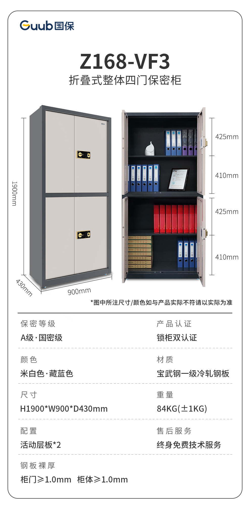 商品标题:国保Z168-VF3折叠整体四门无抽保密柜1900*900*430mm文件柜(单位:个)