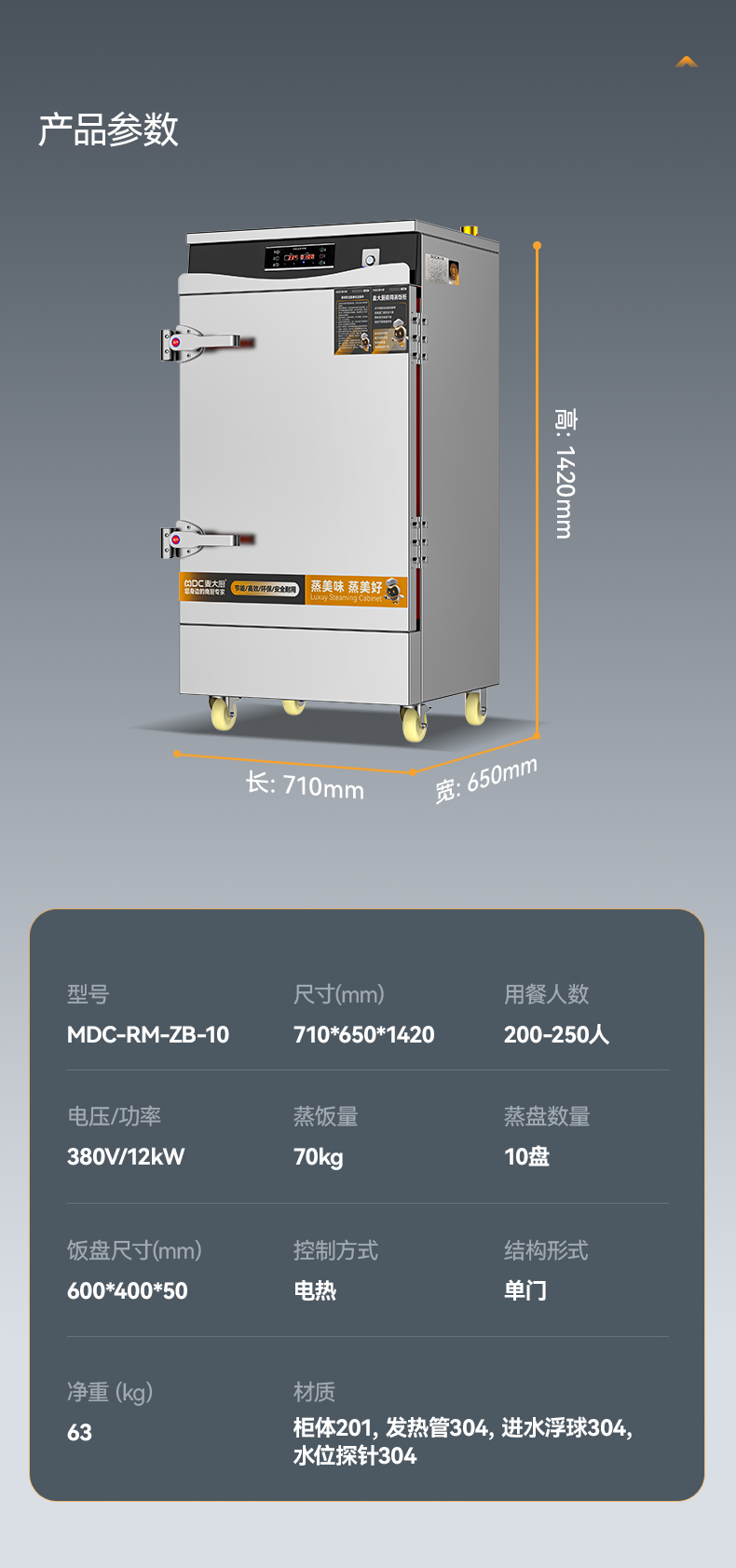 商品标题:麦大厨 MDC-RM-ZB-10 智能蒸饭柜10盘蒸饭车商用 380V 12KW (单位:台)