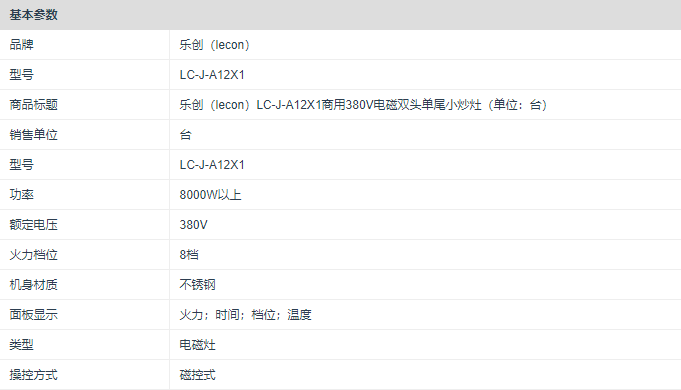 商品标题:乐创(lecon)LC-J-A12X1商用380V电磁双头单尾小炒灶(单位:台)