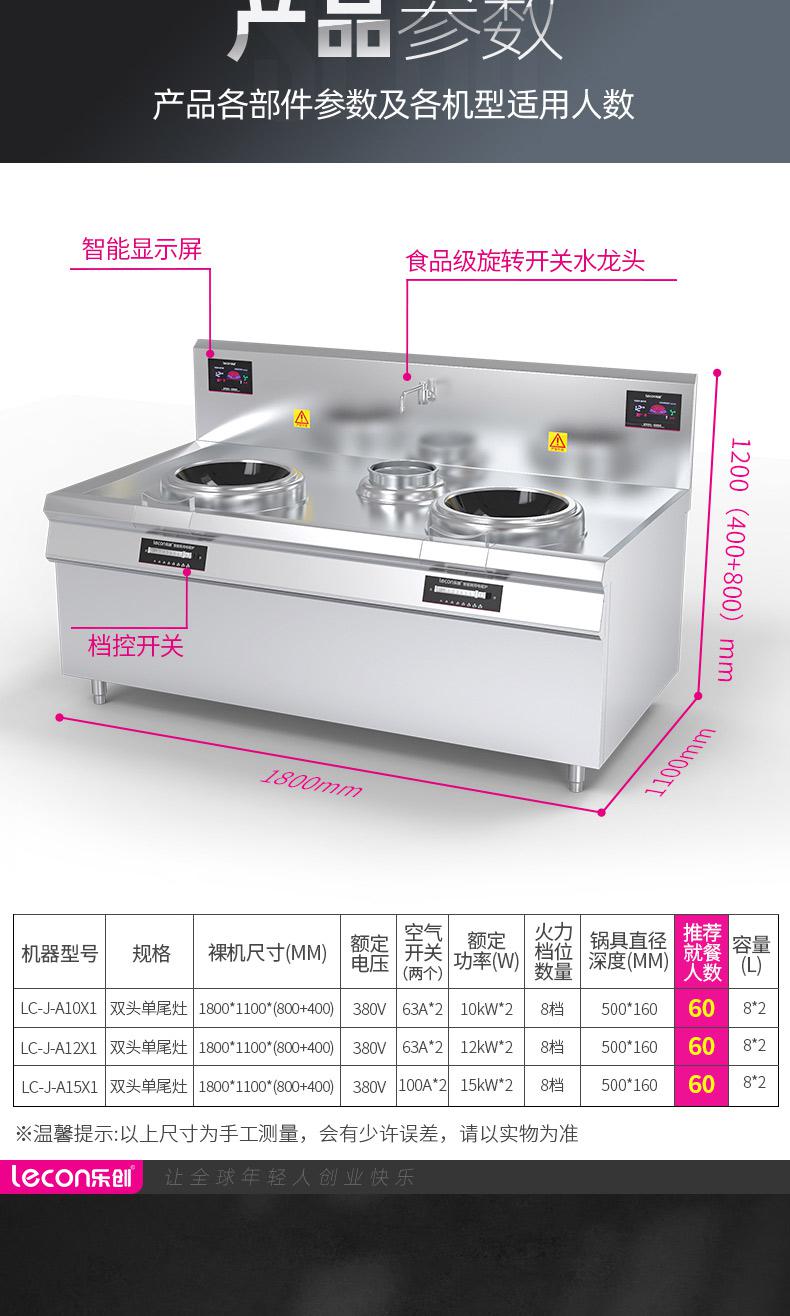 商品标题:乐创(lecon)LC-J-A15X1 商用电磁双头单尾小炒灶(台)