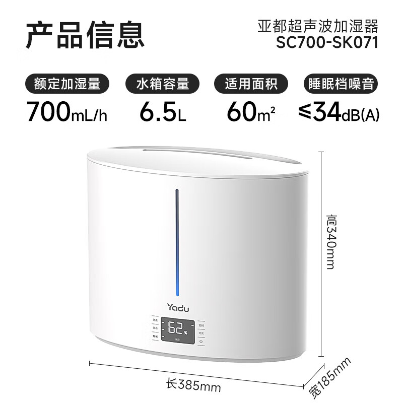 商品标题:亚都(YADU)加湿器 上加水大容量6.5L SC700-SK071 (单位:台)