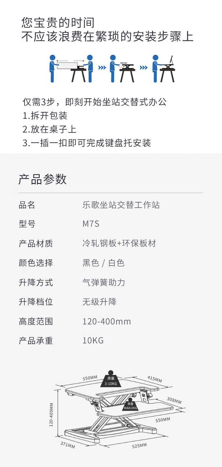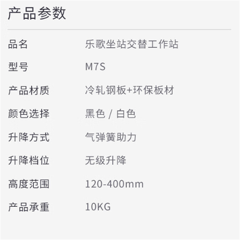 商品标题:乐歌M7S升降台黑色小号(台)
